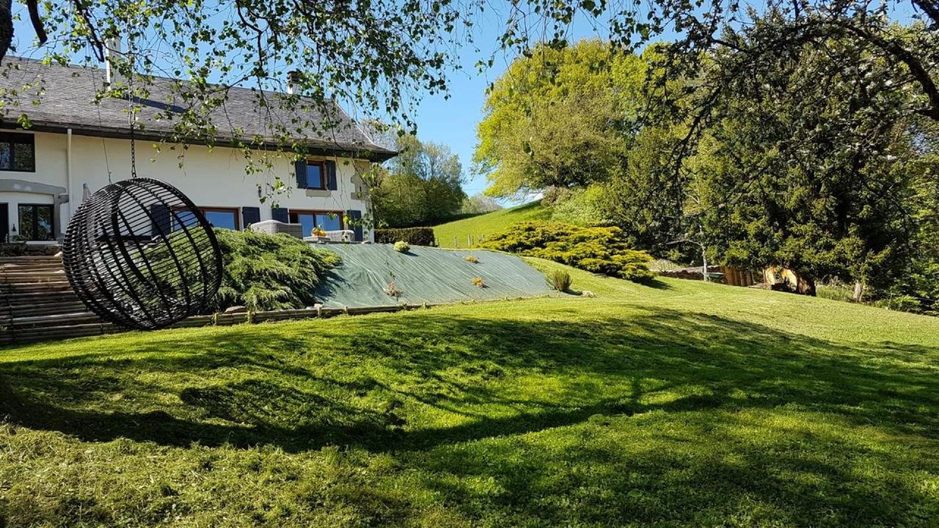 À Moye (74150), sur un spacieux terrain de 10567 m², agrémenté d'une source, cette propriété offre une vue magnifique sur les montagnes environnantes, et un cadre paisible et verdoyant, idéal pour les amoureux de la nature.