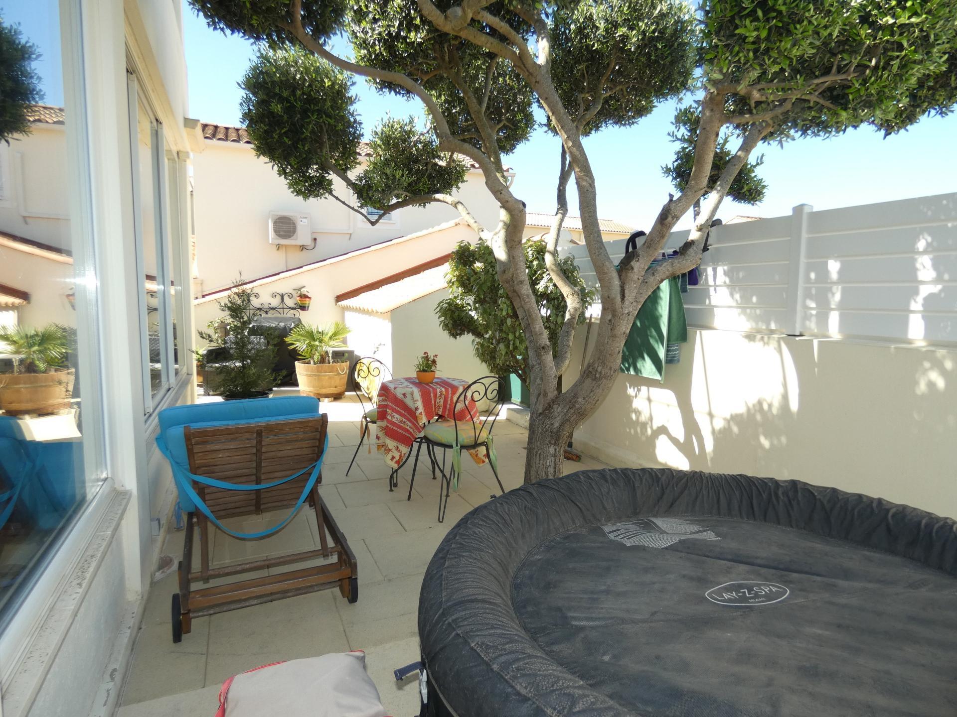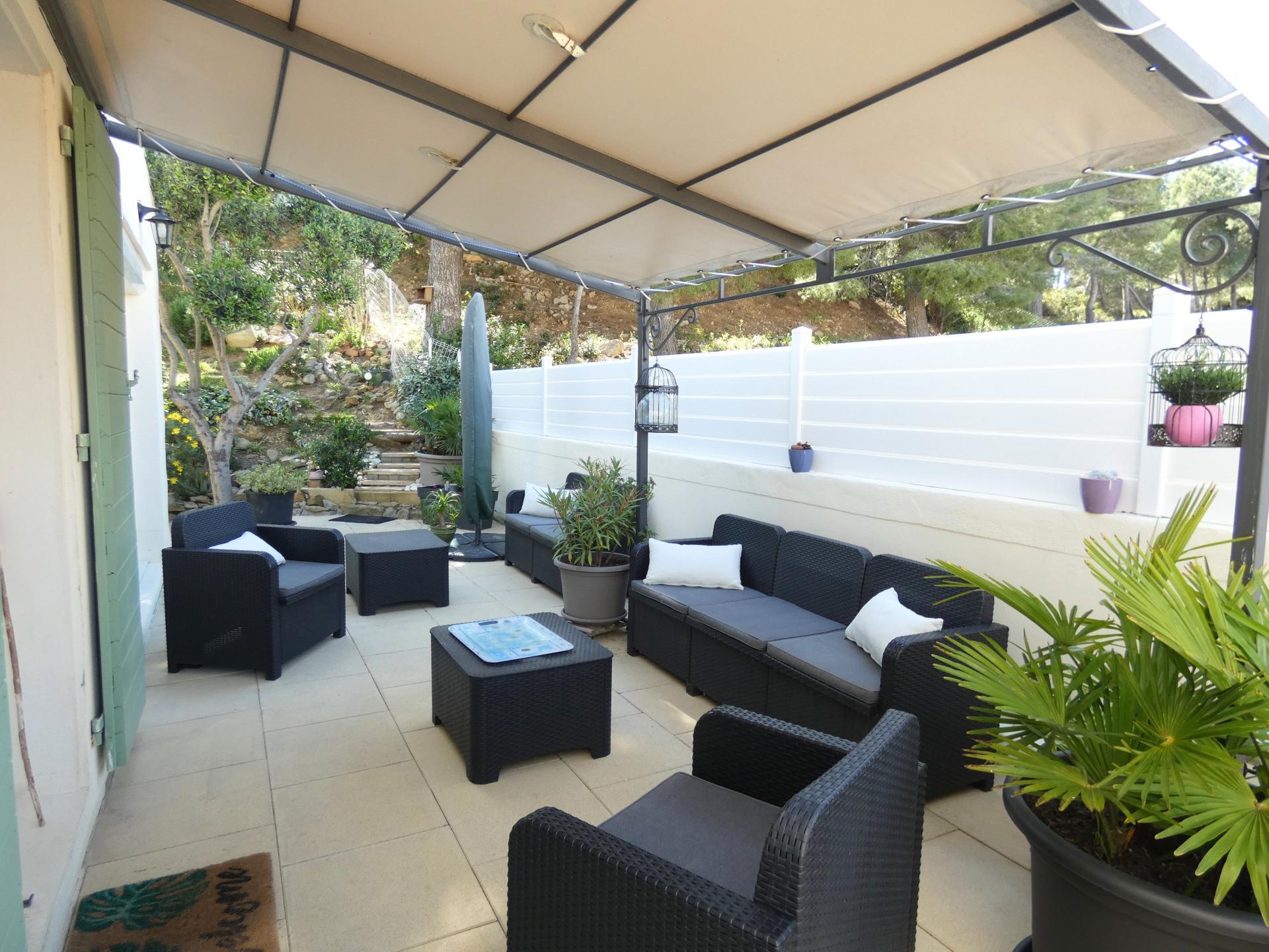 A l'extérieur, la maison dispose de 90m² de terrasse avec pergola réalisée par un ferronnier, un charmant jardin rocailleux aux essences méditerranéennes facile d'entretien, un jacuzzi vient compléter l'ensemble.