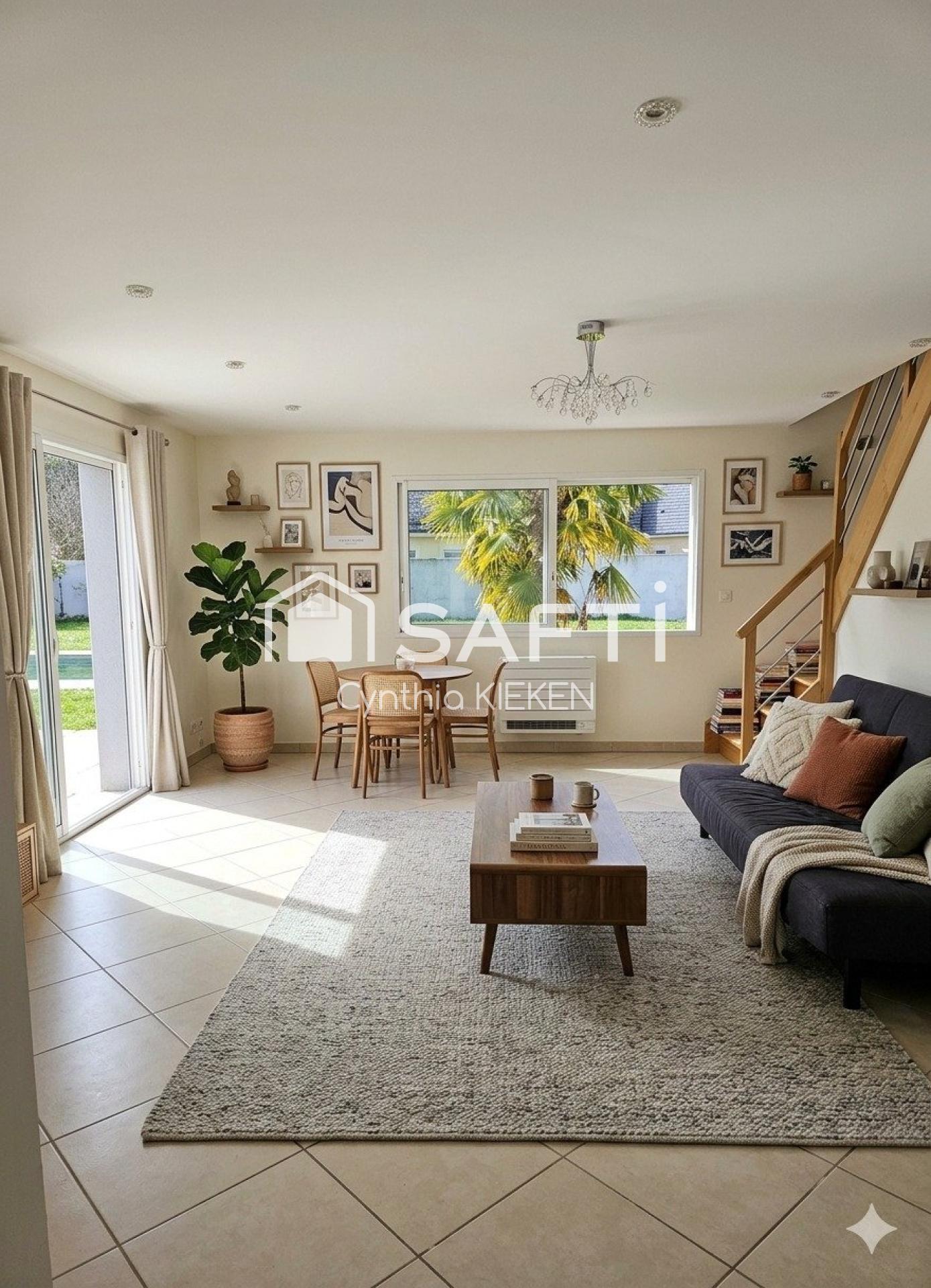 Au rez-de-chaussée, vous trouverez une grande pièce de vie lumineuse avec cuisine ouverte et espace repas, idéale pour partager des moments en famille.