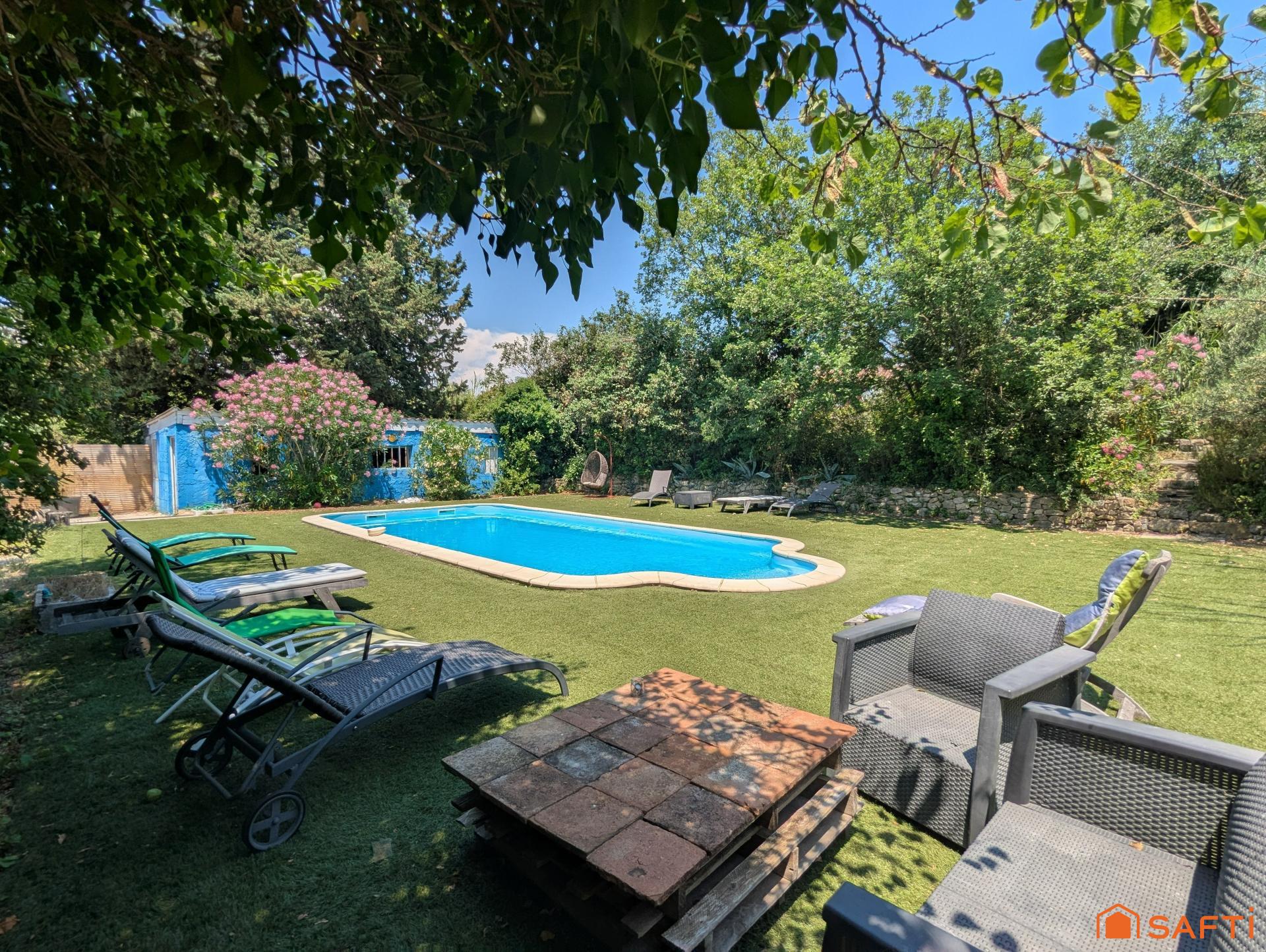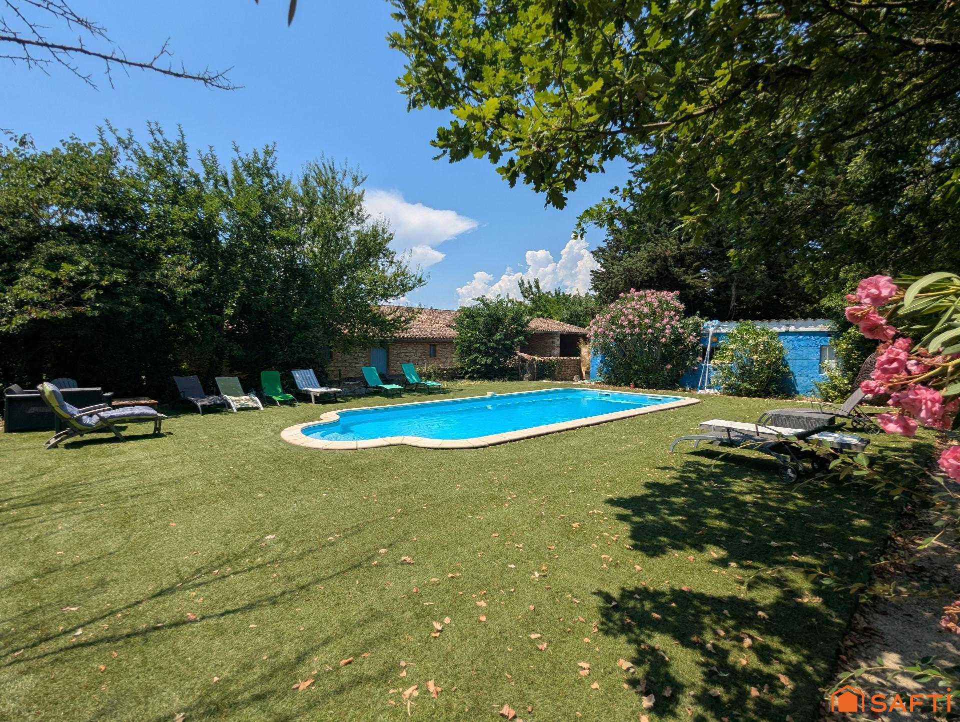 Mas de caractère, fort potentiel, jolie terrain arboré avec piscine