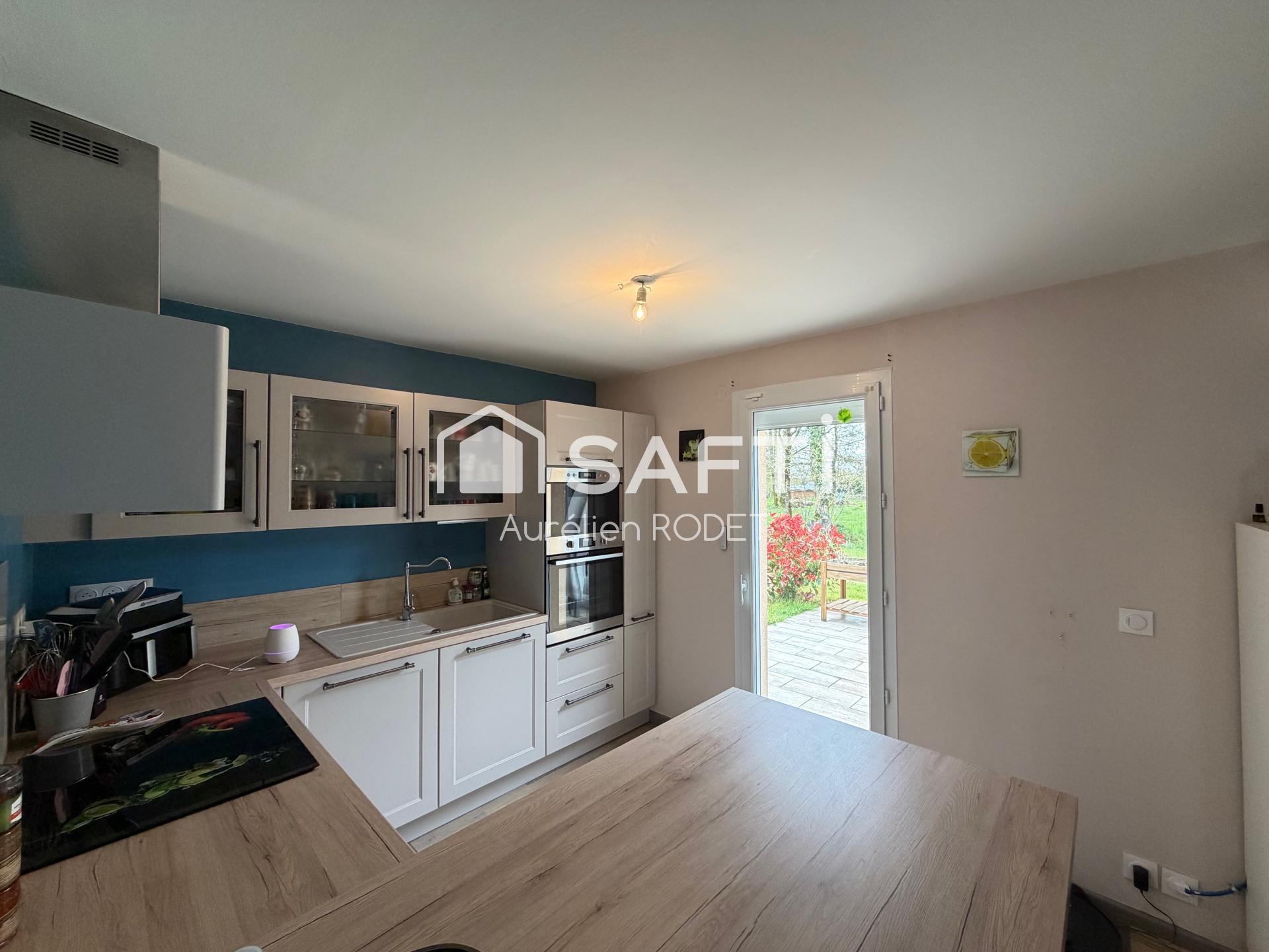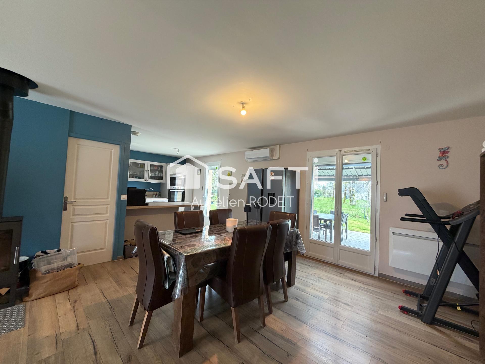 Construit en 2007, ce pavillon de 95 m² sur un terrain de 1285 m² présente un agencement pratique avec une entrée, un séjour lumineux agrémenté d'un poêle à bois, une cuisine équipée, un bureau et une buanderie. Les 3 chambres, dont une utilisée comme dressing, offrent un espace de vie confortable, complété par une salle de bain et un WC. À l'extérieur, on trouve un garage de 40m² non attenant, une agréable terrasse avec tonnelle, et une pompe à chaleur récente pour un confort optimal.