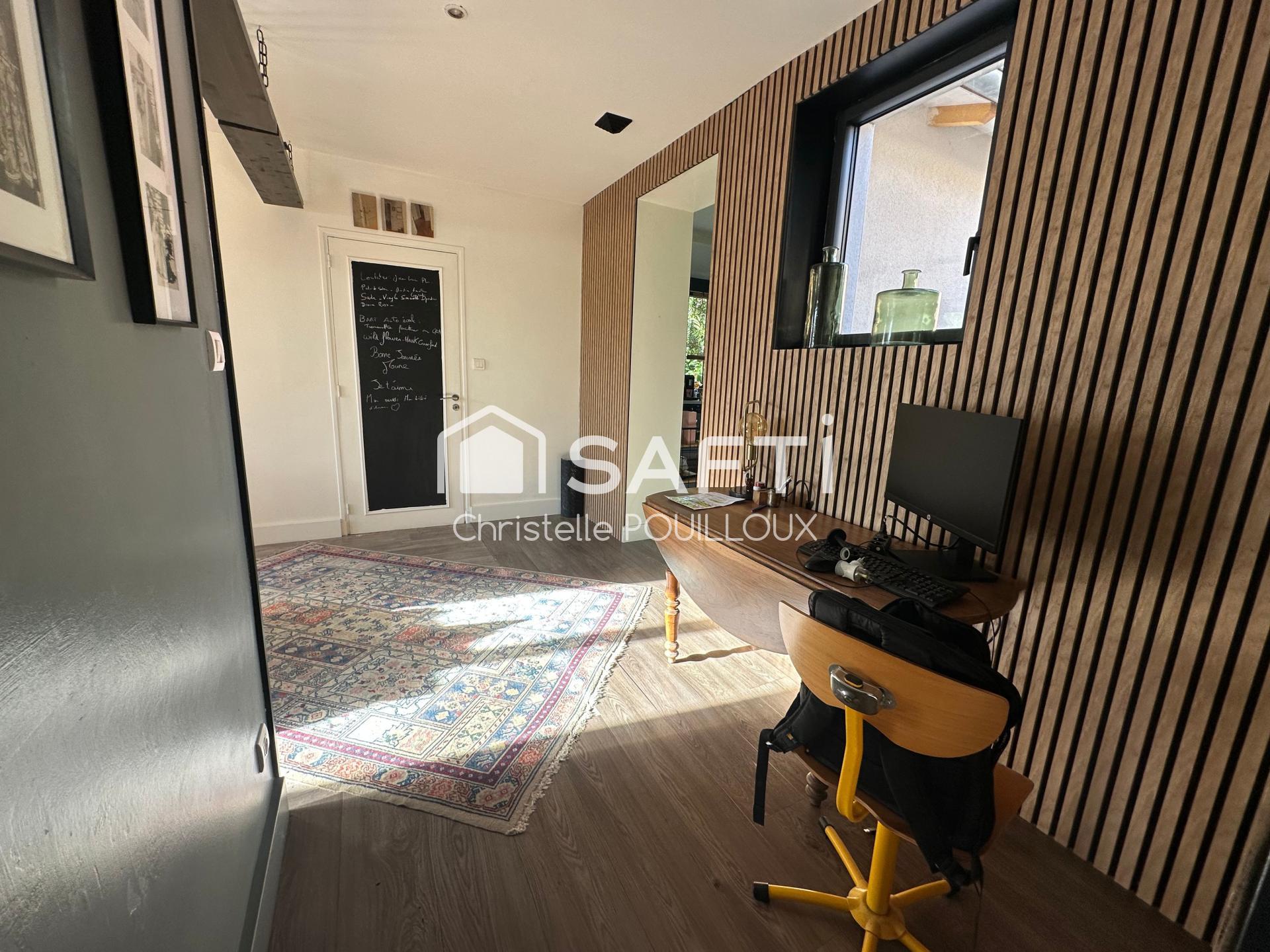 Dès l’entrée, un espace rangement/dressing très pratique vous accueille, avant de s’ouvrir sur une pièce de vie lumineuse, réchauffée par un poêle à bois, avec un accès direct vers l’extérieur : terrasse bois, jardin et piscine hors sol (2022) avec filtration, pour profiter pleinement des beaux jours.