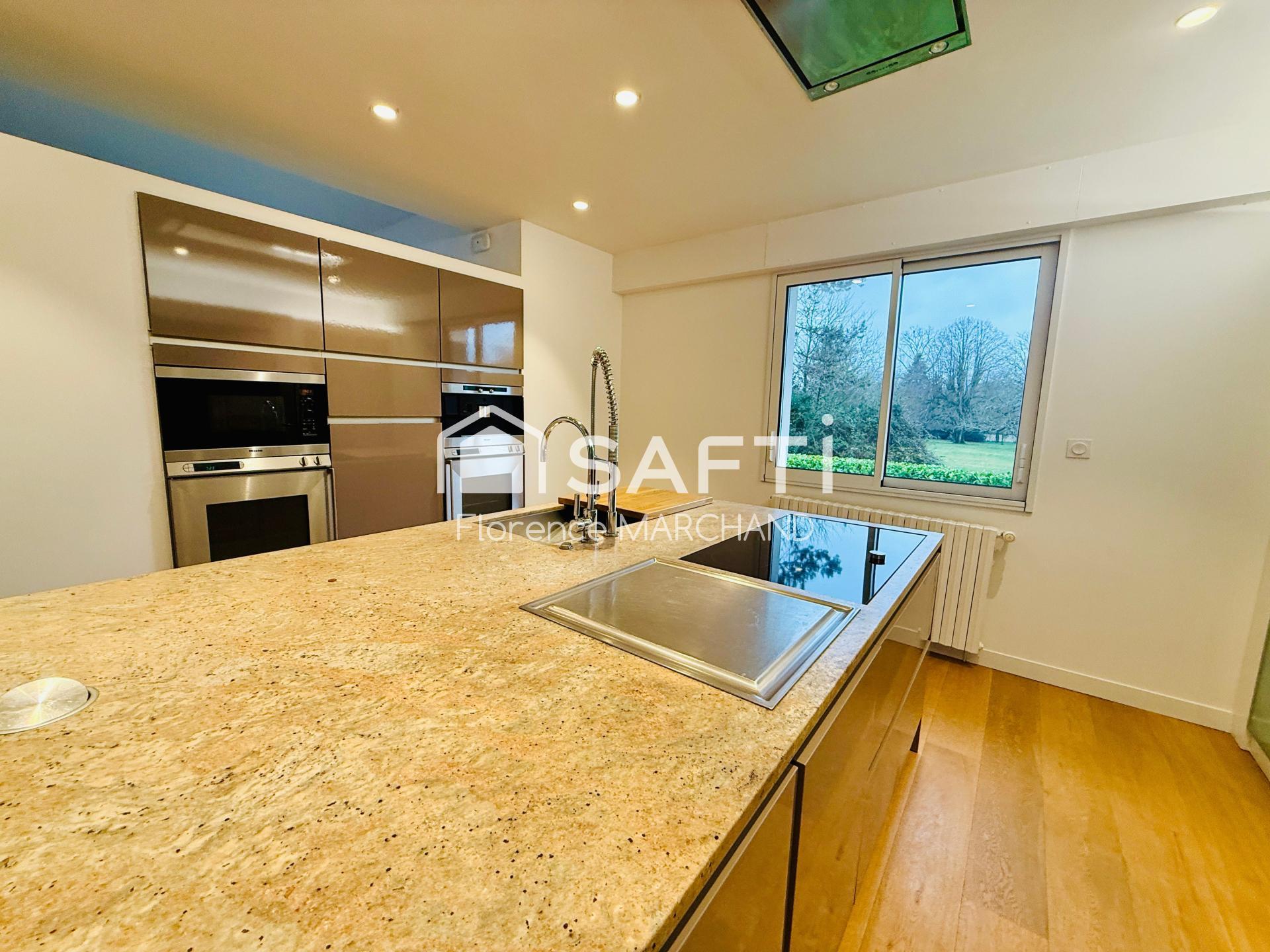 La cuisine indépendante de 24 m2, entièrement équipée, constitue le véritable cœur de la maison. Réalisée avec des prestations haut de gamme, elle séduira tout particulièrement les passionnés de gastronomie, faisant de cet espace un lieu aussi fonctionnel qu'inspirant.