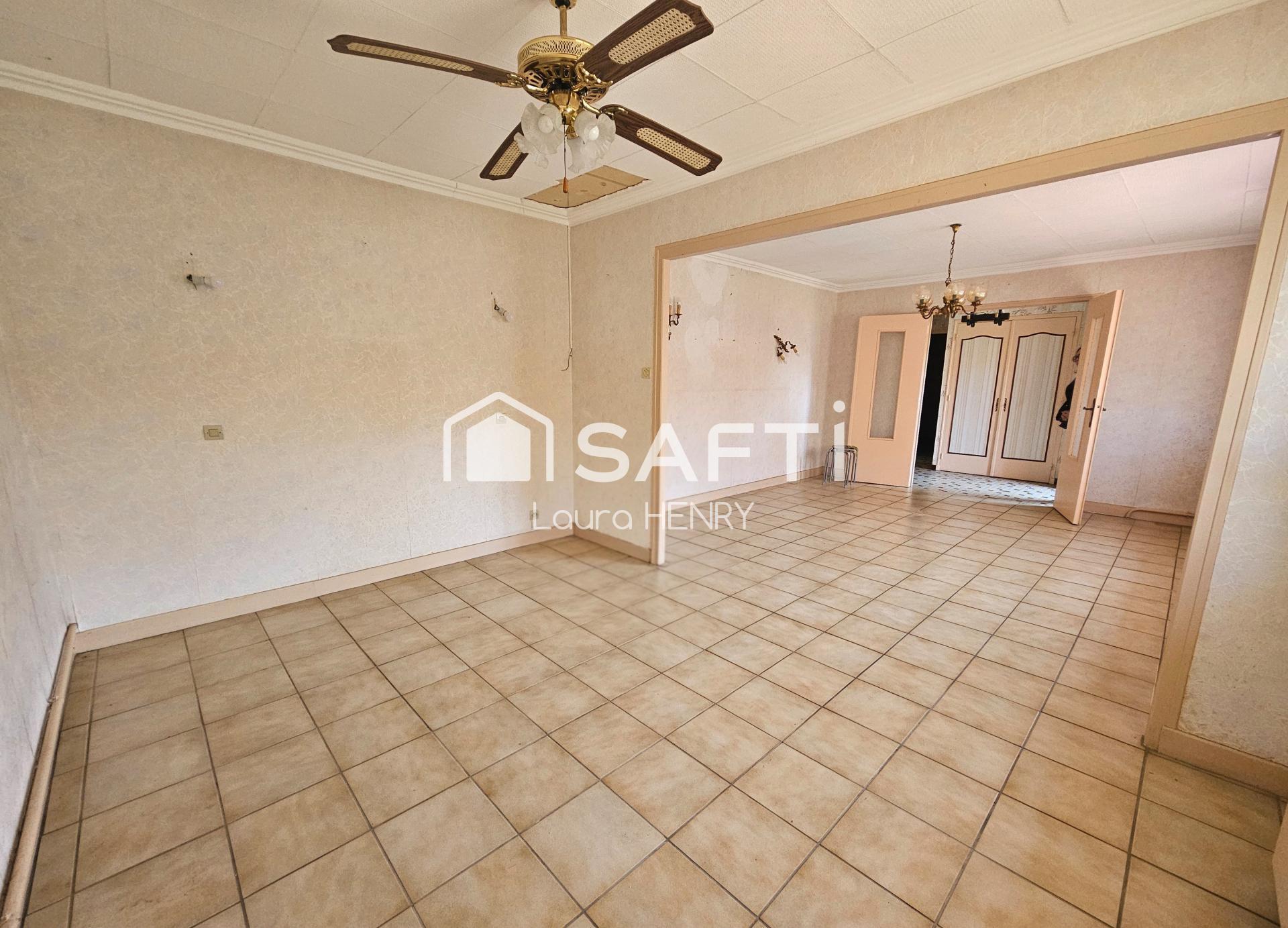 D'une surface d'environ 80 m2, elle dispose de deux chambres, une pièce de vie qui pourra être ouverte sur la cuisine, une salle d'eau et un wc séparé. Des travaux sont à prévoir afin de valoriser le bien et repartir sur des bases seines (reprise partielle de la dalle et des cloisons). Des devis ont déjà été réalisés.