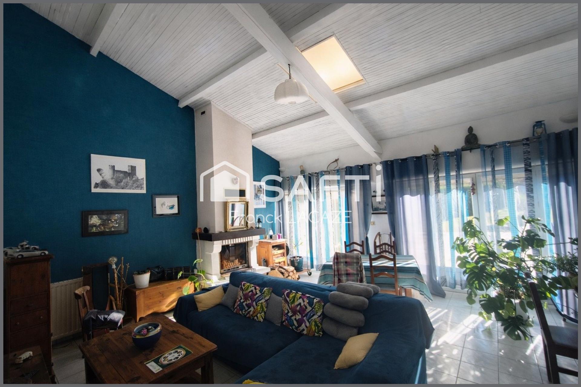 Implantée sur un terrain clos d’environ 600 m², cette maison développe 156 m² habitables et offre un cadre de vie confortable, lumineux et fonctionnel. Vous serez immédiatement séduits par son vaste salon de 32 m², bénéficiant d’une belle hauteur sous plafond et d’une exposition plein sud qui lui confère une luminosité exceptionnelle tout au long de la journée.