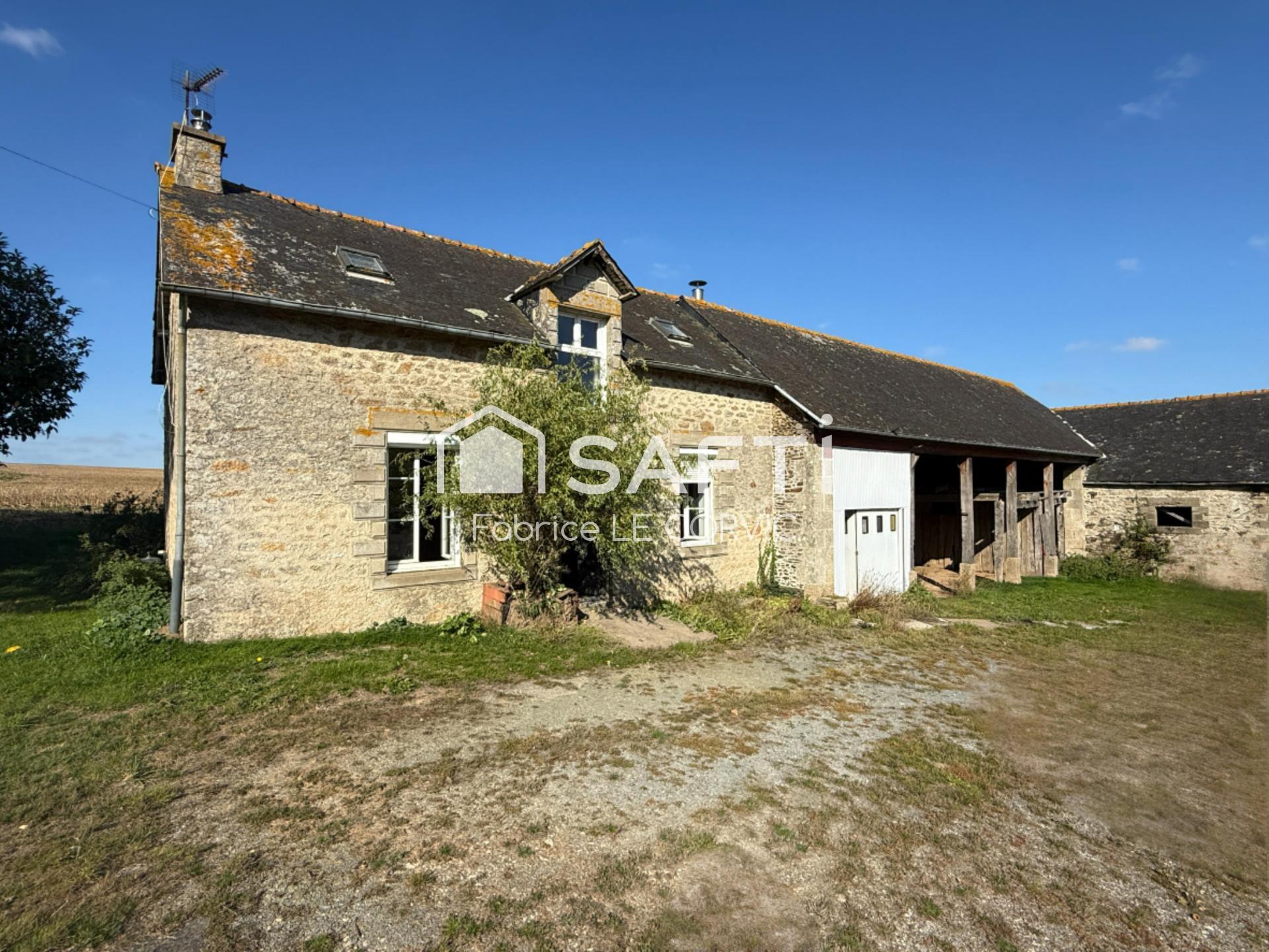 Idéalement située en Centre Bretagne, proche des grands axes en quelques minutes, cette propriété sur un terrain de 4000 m² offre un jardin, un garage, deux hangars, une porcherie, une étable, et diverses dépendances
