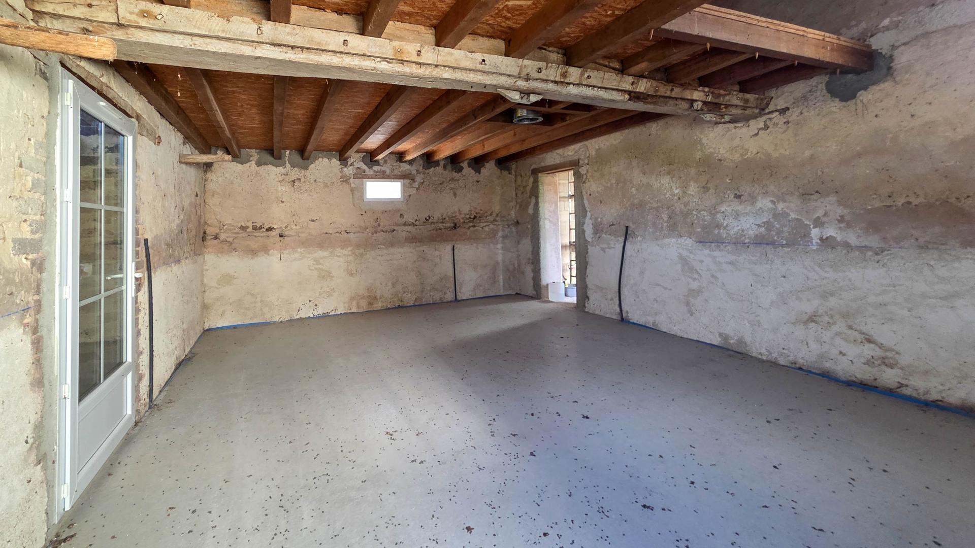 La maison dispose, au rez-de-chaussée, d'une pièce de vie d'environ 37 m² équipée d'un conduit pour poêle à bois, d'un coin cuisine. À l'étage, l'espace permet d'aménager une ou deux chambres selon vos besoins. Les réseaux électriques de la maison sont déjà passés.