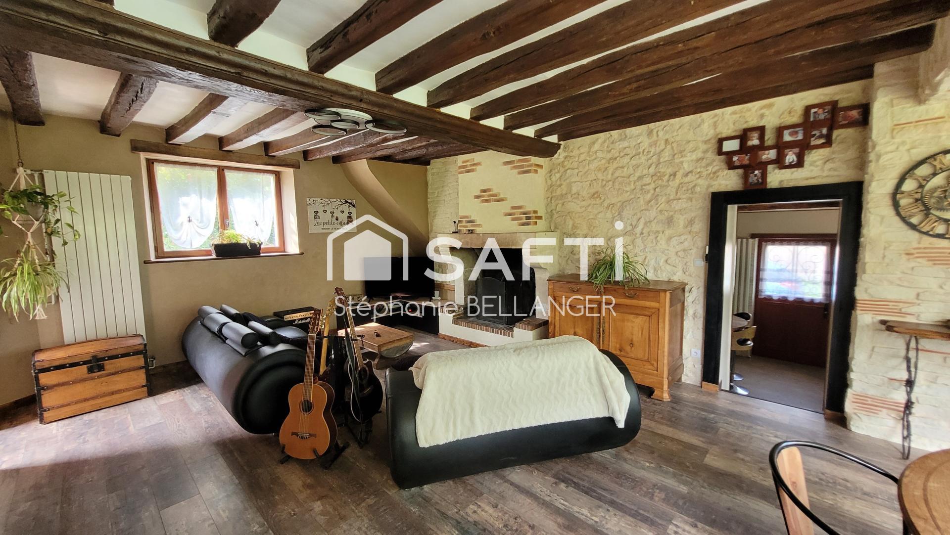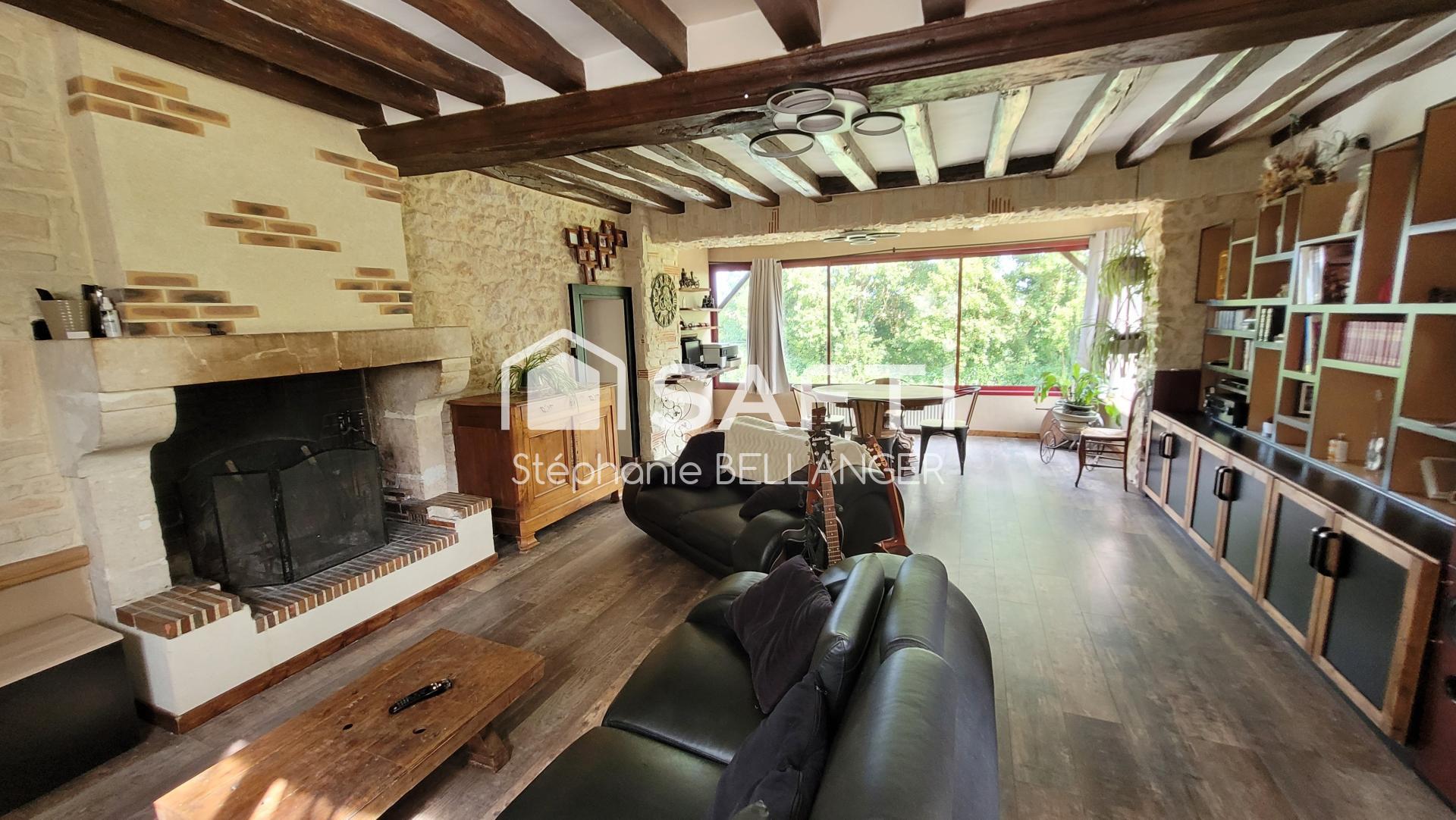 VISITE VIRTUELLE POSSIBLE. Idéalement situé en sortie de village à Noyen/Sarthe je vous propose cette charmante maison de caractère, un ancien relais de chasse, entouré de la nature avec vue sur rivière. Cette maison de 135m2 se compose d'une grande pièce de vie lumineuse de 55m2 avec vue panoramique sur la nature face la Sarthe avec une cheminée en pierre pour le coin salon cocooning. Une cuisine a/e sur mesure ou vous trouverez pierre et poutre tout le charmant de ce bien, une buanderie, WC. A l'étage un couloir dessert une charmante salle d'eau avec douche, vasque et WC, 3 chambres. En sous sol vous trouverez un grand garage de 35m2, la cuve à fioul est en bon état de marche, une microstation installée, un puit sont autant d'atout pour ce bien. A visiter sans tarder pour les amoureux de la nature en bord de rivière !