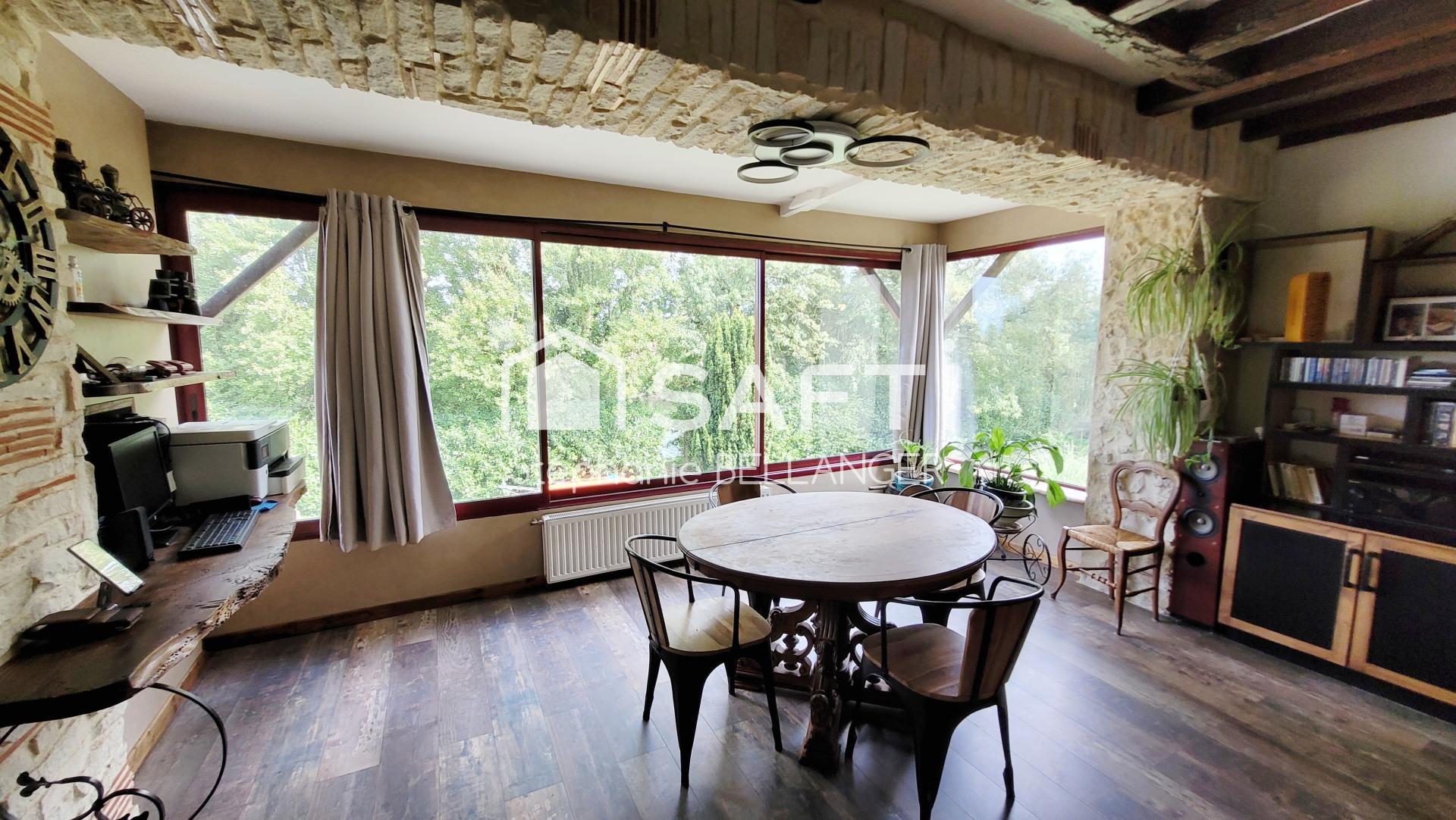 Maison de caractère, grande piece de vie, chambres, grand terrain, grand garage, bord de riviere
