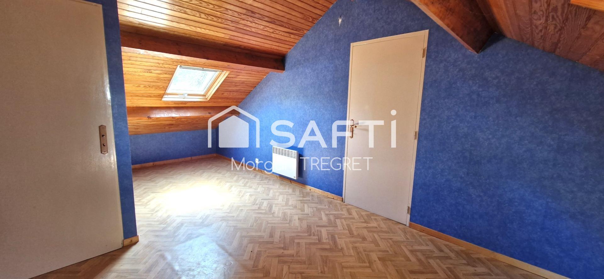 L’intérieur se compose d’une pièce de vie chaleureuse agrémentée d’une cheminée insert, d’une cuisine indépendante, d’une véranda, de trois chambres, d’une salle d’eau, de toilettes séparées et d’une buanderie. À l’étage, une quatrième chambre vient compléter l’espace nuit.