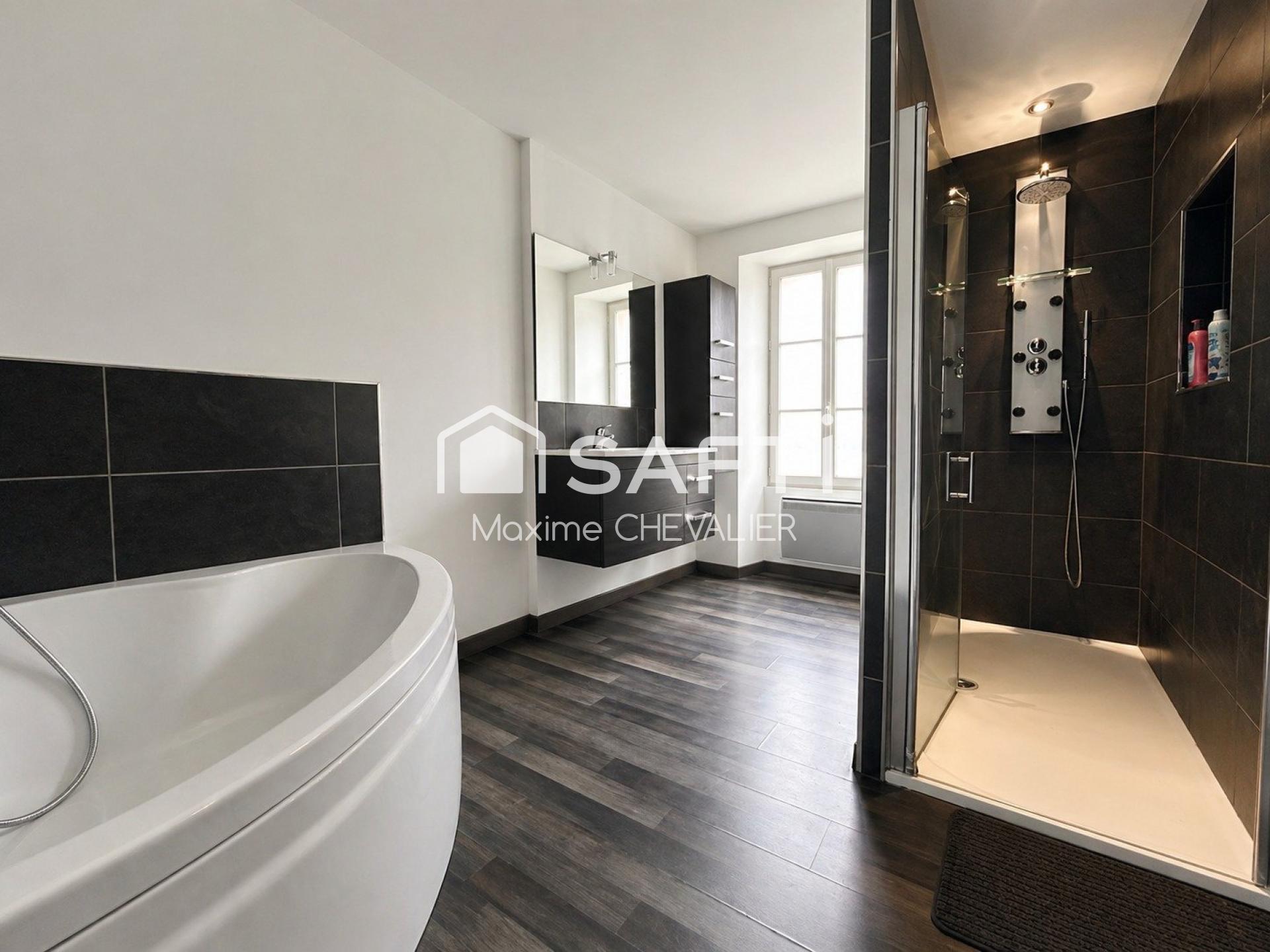 À l’étage, un palier dessert trois chambres de 10,12 et 14m² ainsi qu’une salle d’eau récemment rénovée, équipée d’une douche et d’une baignoire.