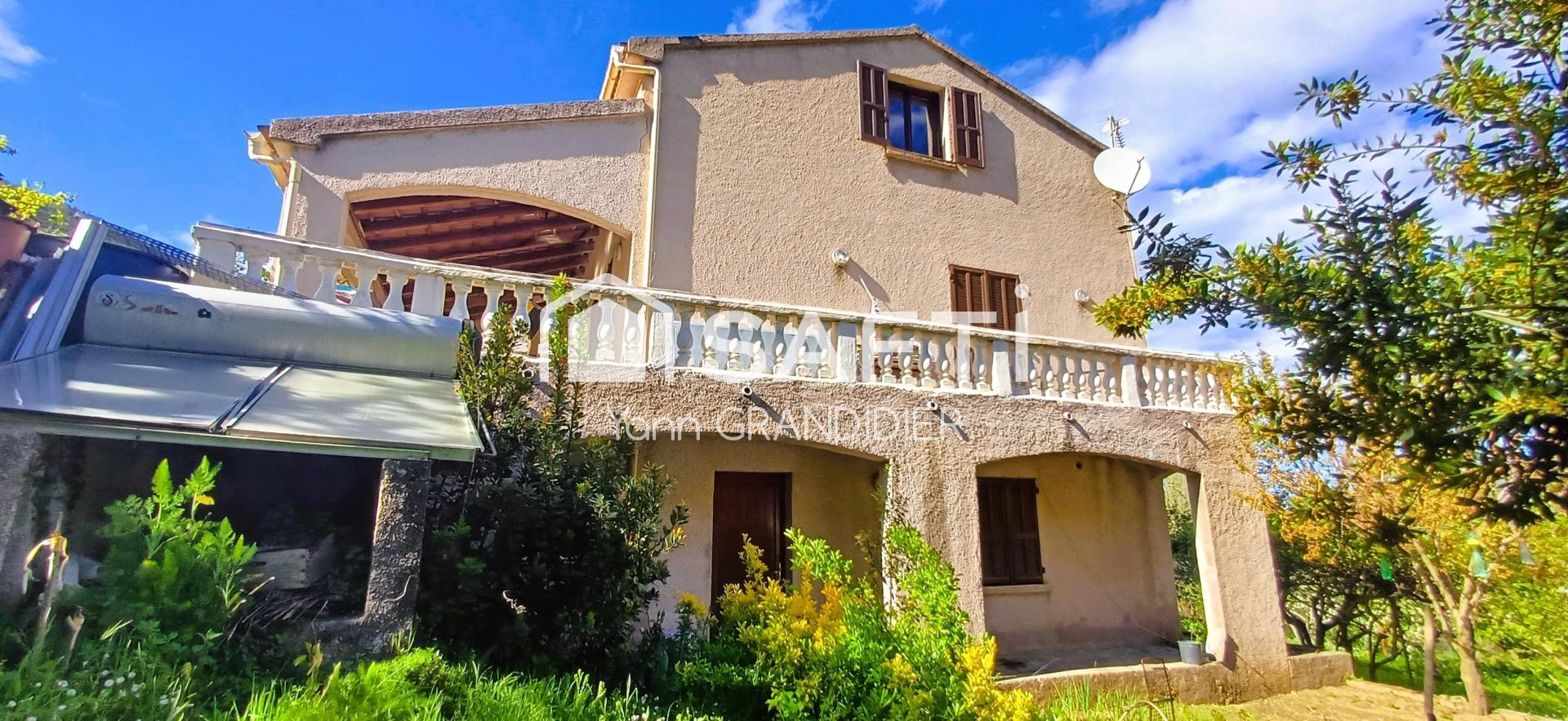 Sur un vaste terrain clôturé et arboré de 3410 m² dont la plus grande partie est à l'arrière de la maison. Bien desservi et accessible, le jardin comprend potager, verger, un abris maçonné et offre une vue dégagée sans vis à vis sur les montagnes et l'église de Sant'Austinu datant du XVIII siècle. Richement planté, il se compose d’une belle variété d’espèces fruitières : cerisiers, pommiers, poiriers, pruniers, plaqueminiers, noyers, noisetiers, néflier, grenadier et autres. Cerise sur le gâteau: un ruisseau.