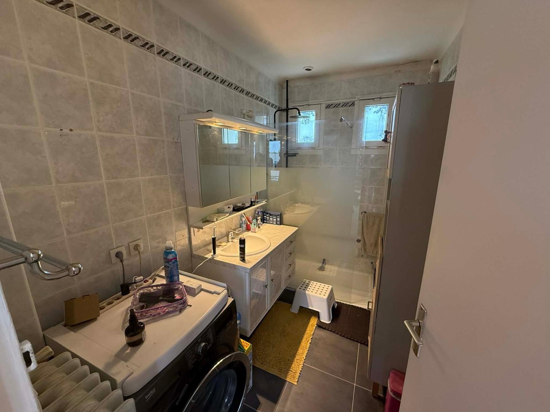 À l’étage, des travaux sont à prévoir pour finaliser l’aménagement. Le potentiel est intéressant avec la possibilité de créer deux chambres supplémentaires. Une salle de bain y est déjà fonctionnelle, permettant d’envisager facilement un espace nuit complet.