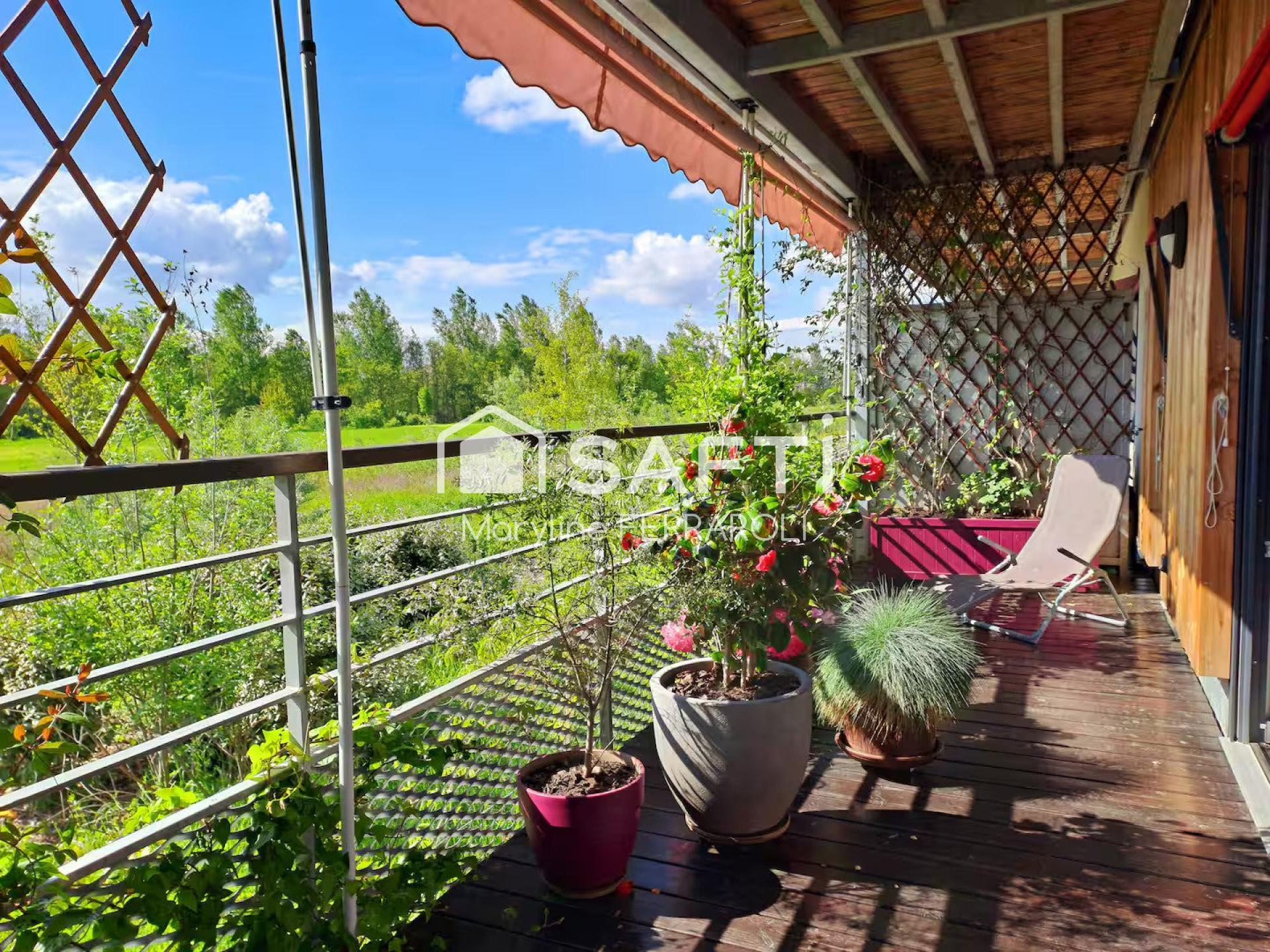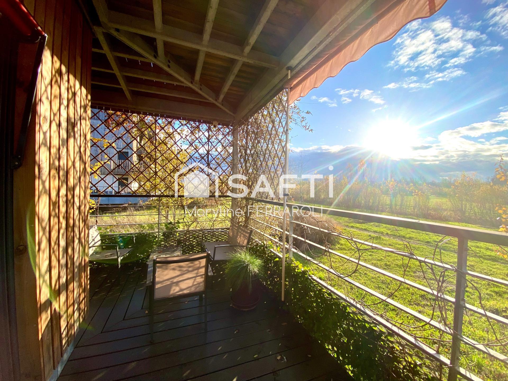 Dépaysement garanti avec cette maison très lumineuse, située en bout d’allée, à l’abri de tout vis-à-vis, avec une vue ouverte sur une prairie non constructible.
