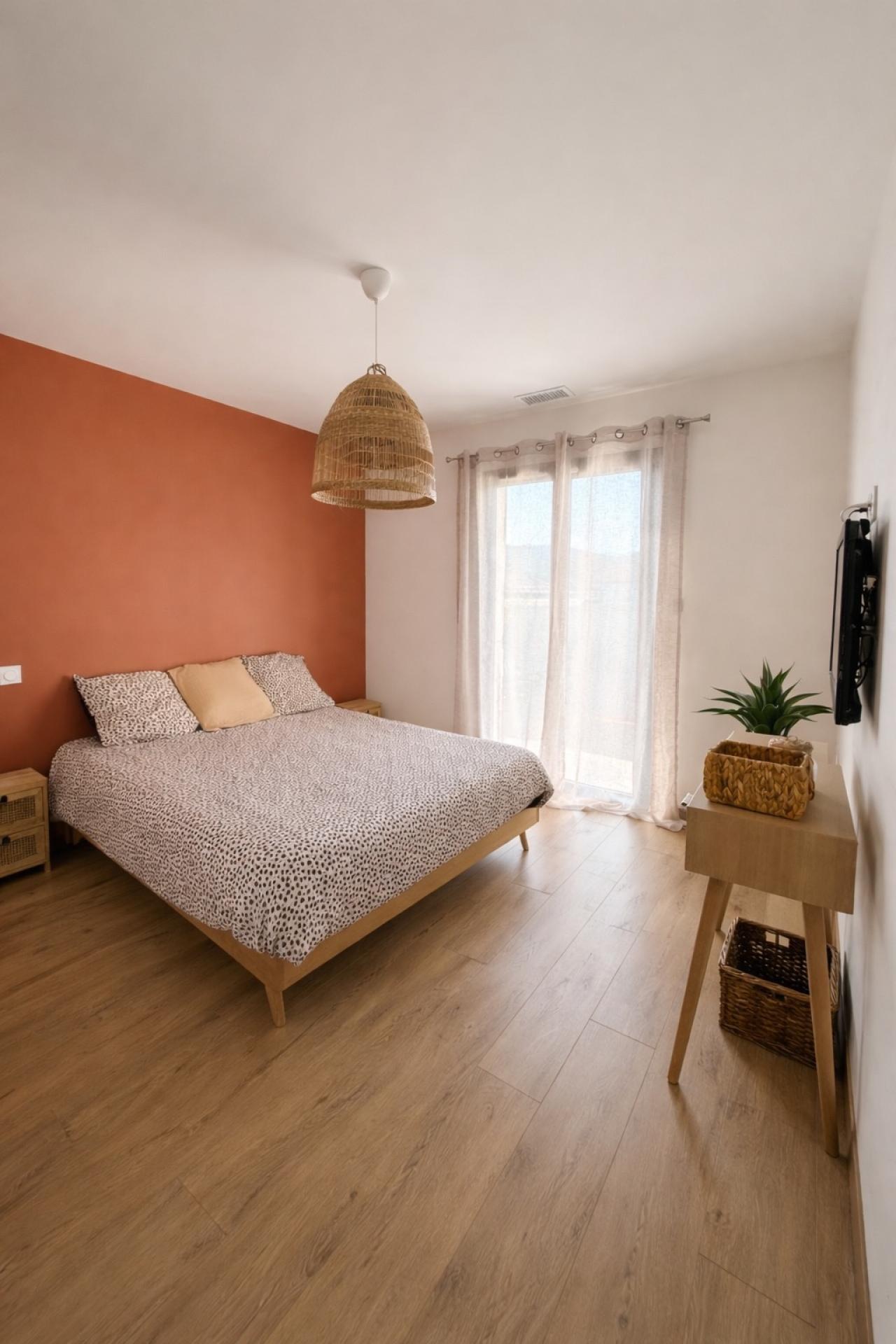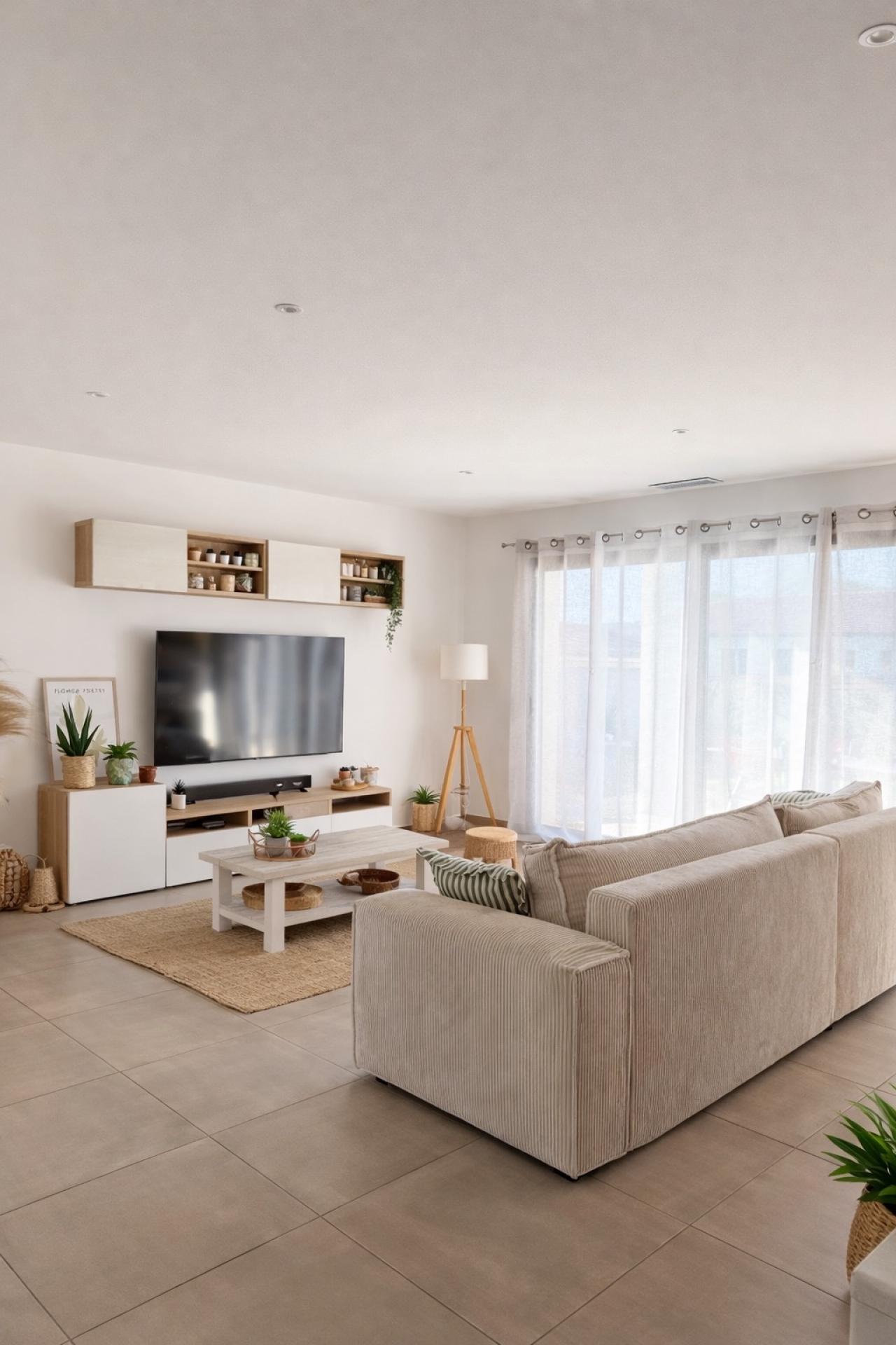 Dès l’entrée, les volumes généreux et la luminosité omniprésente séduisent immédiatement. La pièce principale, conviviale et raffinée, réunit un salon-séjour spacieux prolongé par une cuisine ouverte entièrement équipée avec îlot central, conçue pour allier design et fonctionnalité. L’ensemble s’ouvre sur une terrasse, prolongeant naturellement les lieux de vie vers l’extérieur.