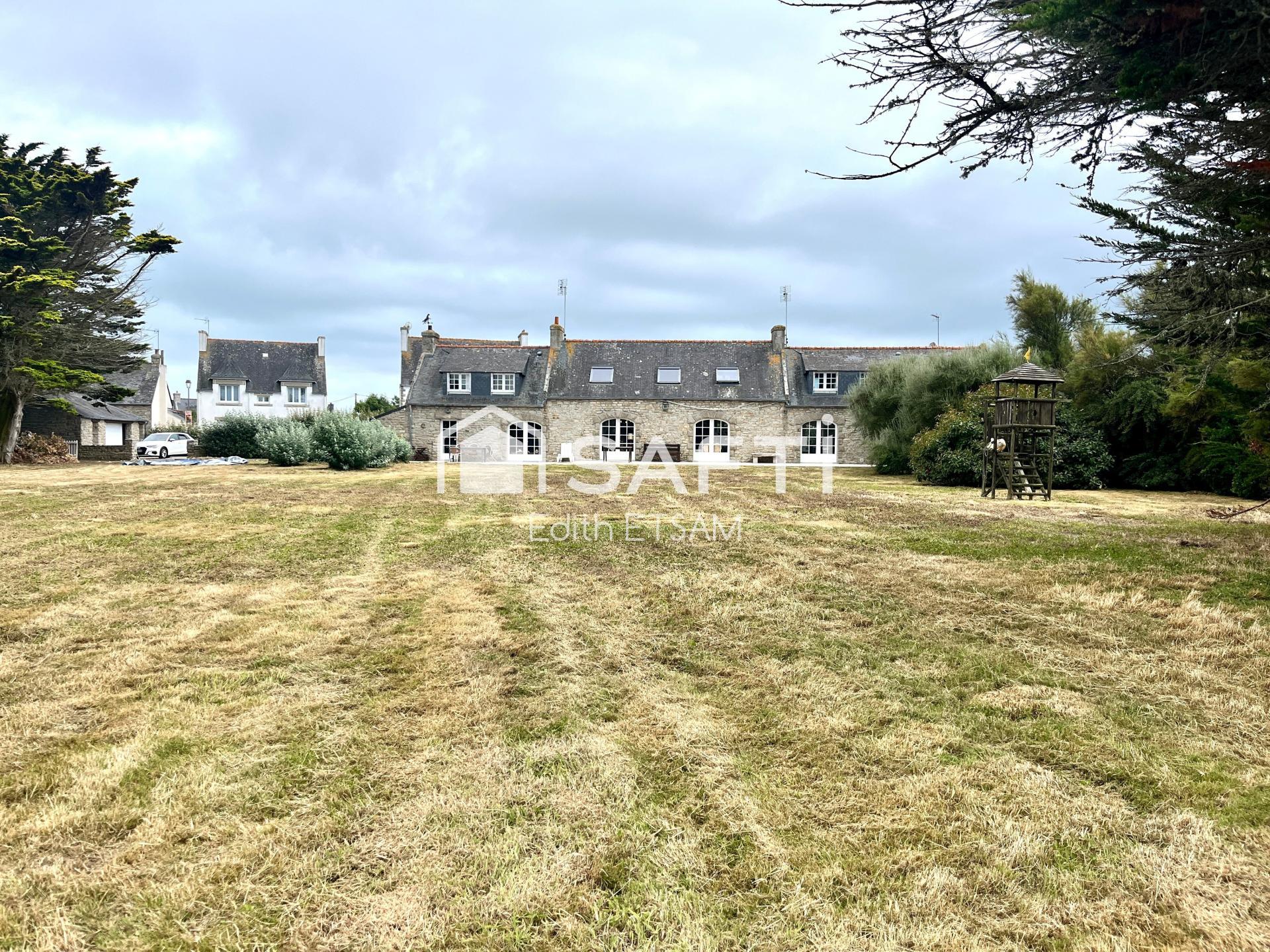 Coup de cœur assuré pour cette authentique longère en pierre, idéalement située à Saint-Guénolé – Penmarc’h, à seulement 1,3 km de la plage de la Joie et 1 km du port de Saint-Guénolé, tout en étant à proximité immédiate des commerces. Offrant une généreuse surface habitable de 230 m², cette longère pleine de charme, baignée de lumière grâce à son orientation plein sud, vous accueille dans un cadre verdoyant grâce à son superbe terrain arboré et constructible de plus de 4 500 m².