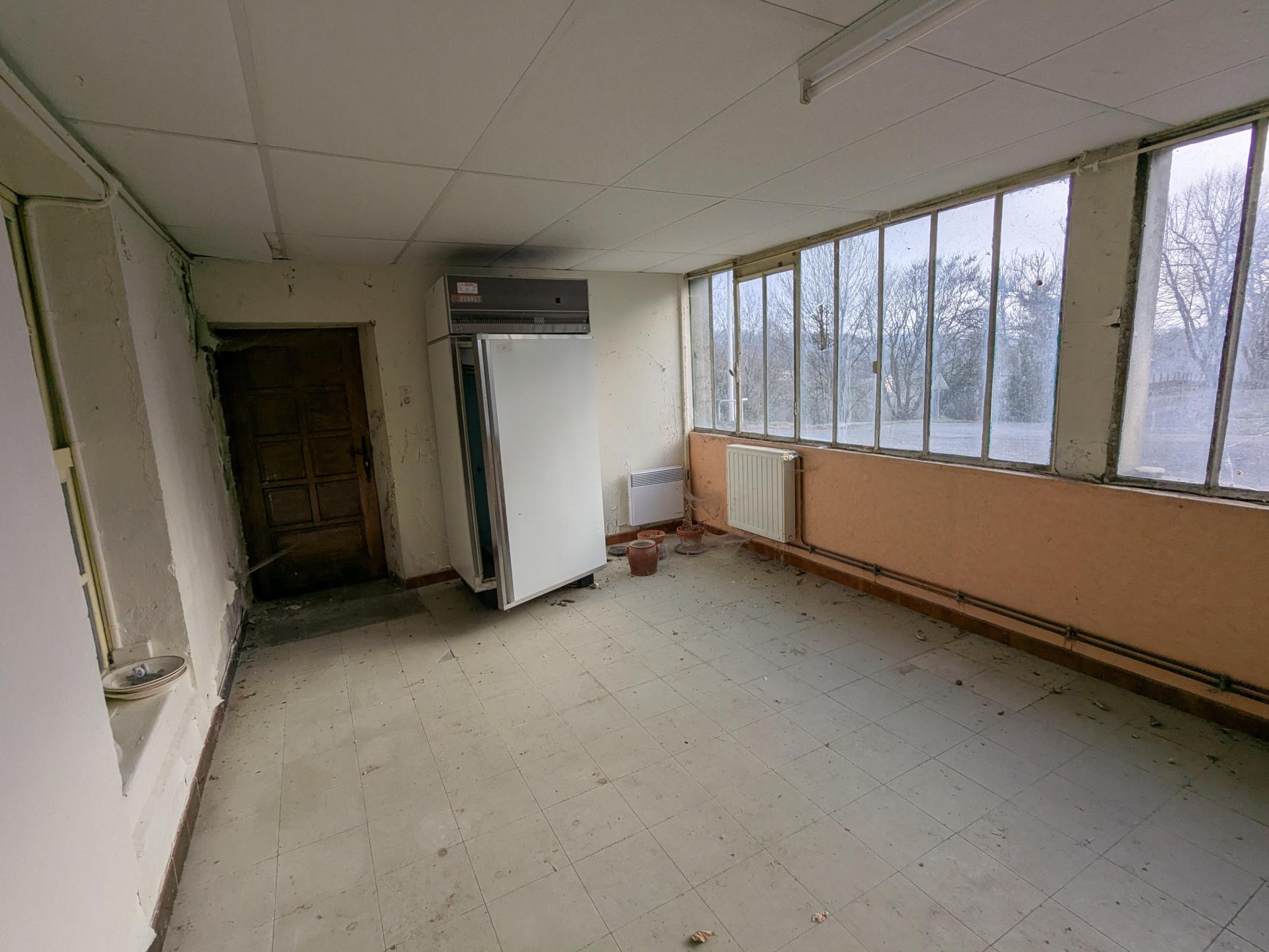 Anciennement utilisée comme internat et espaces collectifs, la bâtisse se compose aujourd’hui, au rez-de-chaussée, d’une ancienne cuisine professionnelle, de bureaux, de plusieurs pièces, d’une véranda, ainsi que d’une cave et d’une remise.