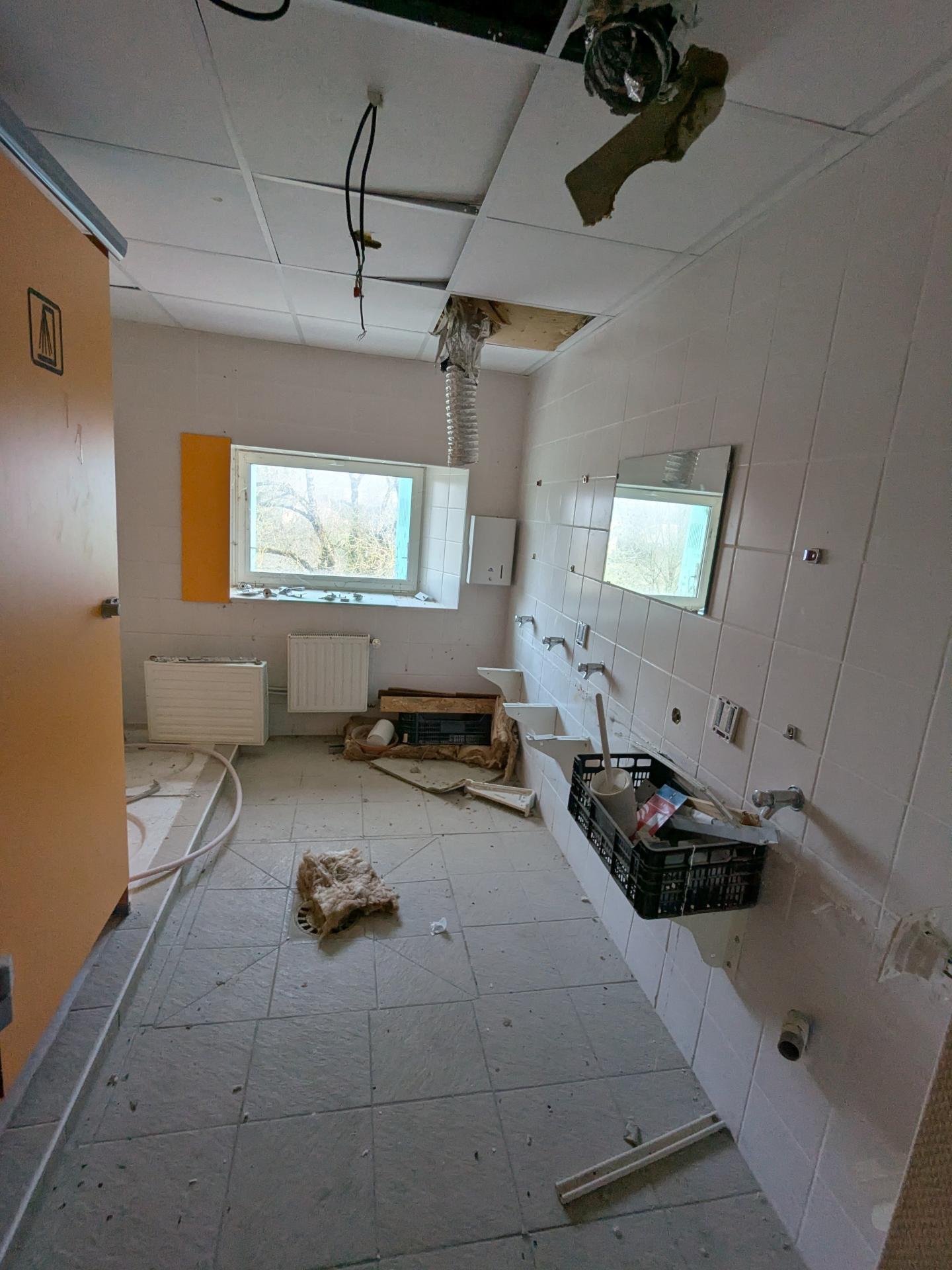 À l’étage, on retrouve de vastes espaces correspondant aux anciennes salles de classe, aux anciennes douches et WC, laissant place à de nombreuses possibilités d’aménagement selon les projets.