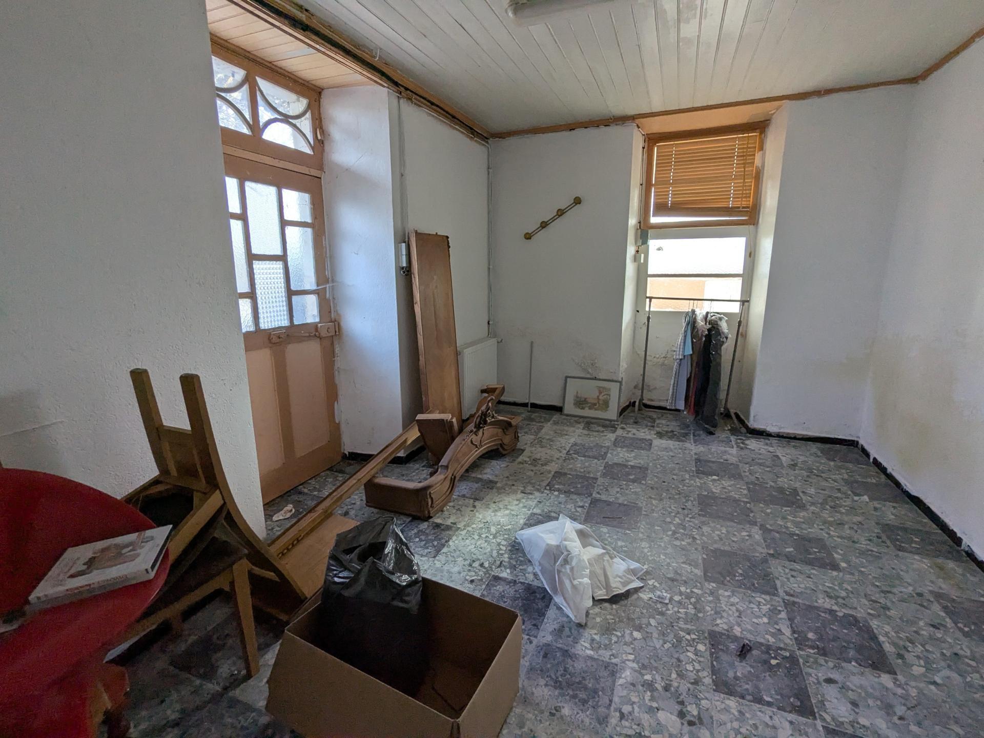 Maison à rénover avec quelques fenêtres double vitrage. Isolation des murs par l'intérieur réalisée.