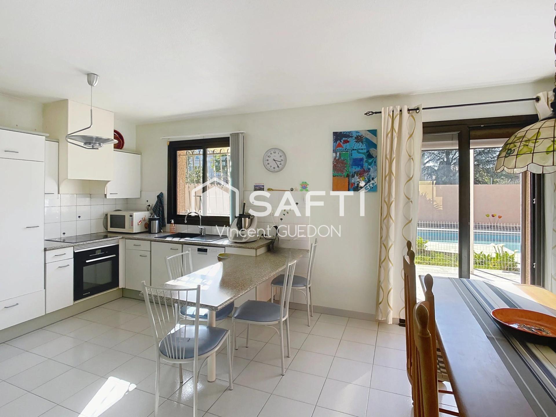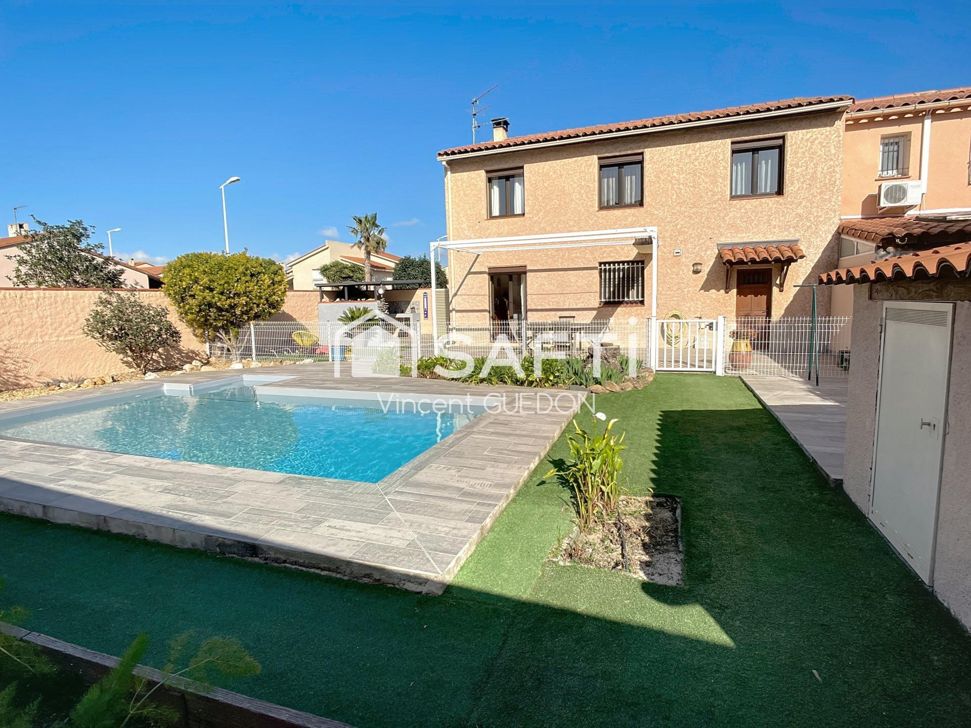 Perpignan, découvrez cette belle maison familiale de construction traditionnelle en 3 faces d'environ 120 m² habitables sur un terrain clos et arboré de 470 m². Idéale pour une famille, elle offre un espace de vie lumineux de 40 m², climatisé et agrémenté d’un insert bois, ouvert sur une cuisine équipée. À l’étage, trois grandes chambres, un bureau, un dressing, une salle d’eau récente avec une douche à l'italienne et un WC indépendant composent l’espace nuit. L’extérieur, pensé pour le confort, dispose d’une piscine (7x3.5m) avec liner neuf, d’une terrasse carrelée avec sa pergola, d’une cuisine d’été couverte et d’un forage pour l’arrosage. Le grand garage d'environ 30m² traversant avec son espace buanderie ajoute un vrai plus. Acès rapide à la gare TGV et l'aéroport, des écoles, commerces, collège et péage Sud, cette maison combine espace, praticité et convivialité. Un lieu idéal pour vivre en famille et profiter du climat méditerranéen toute l’année par son extérieur impéccable !