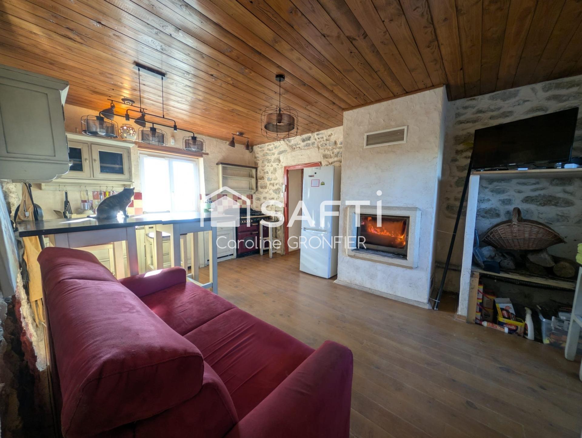 La maison développe environ 105 m² habitables et offre une atmosphère chaleureuse et authentique. L’entrée s’ouvre sur une cuisine avec cheminée, idéale pour les soirées au coin du feu. Le rez-de-chaussée permet une vie de plain-pied avec deux chambres, une salle d’eau de caractère, un WC indépendant ainsi qu’un cellier-buanderie disposant d’un accès direct vers l’extérieur. À l’étage, une troisième chambre complète l’ensemble, accompagnée d’un espace ouvert pouvant servir de salon, de coin détente ou de chambre supplémentaire. Les combles aménagés au-dessus du cellier offrent un volume additionnel, aujourd’hui accessible par une échelle de meunier, parfait pour un couchage occasionnel, un coin jeux ou bureau.