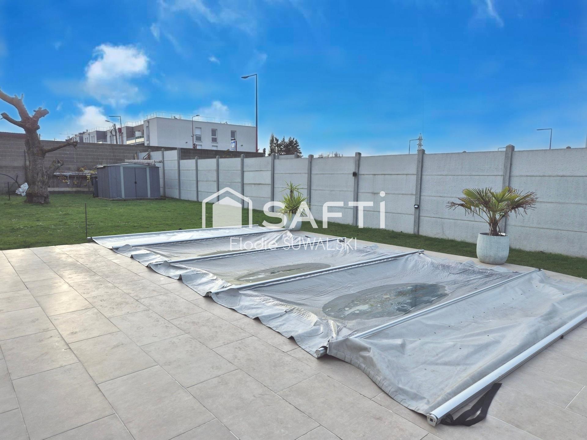 Elle dispose d’un beau jardin entièrement clôturé, d’une superbe piscine sécurisée de 6,5 m × 3 m, d’un local piscine avec cuisine d’été, d’une belle terrasse, d’un garage et 4 places de parking.