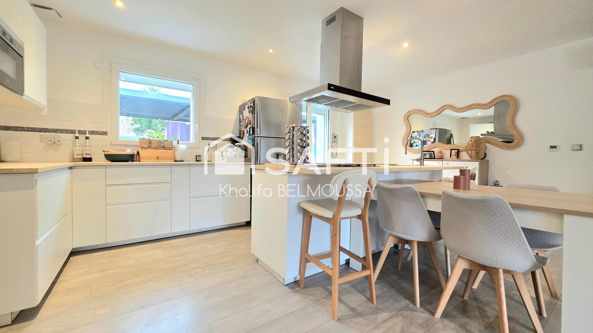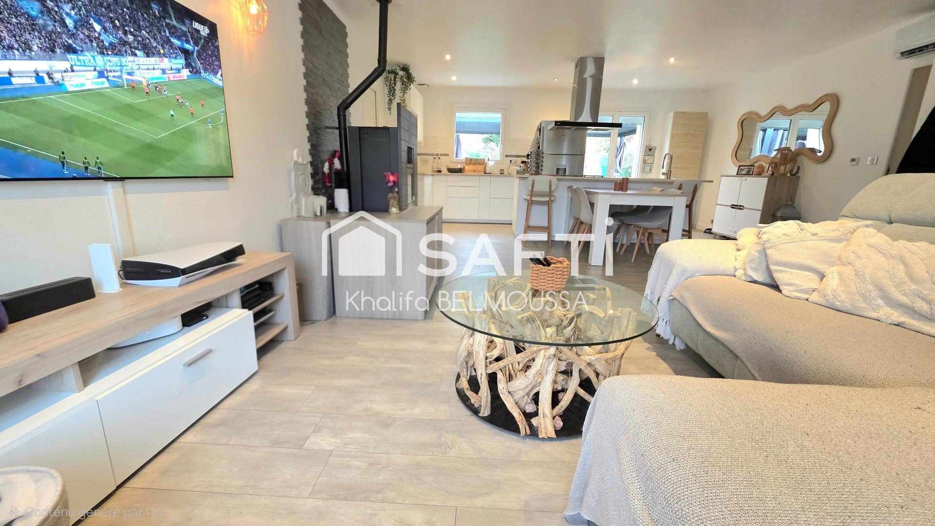 Une belle pièce de vie lumineuse avec sa cuisine entièrement équipée