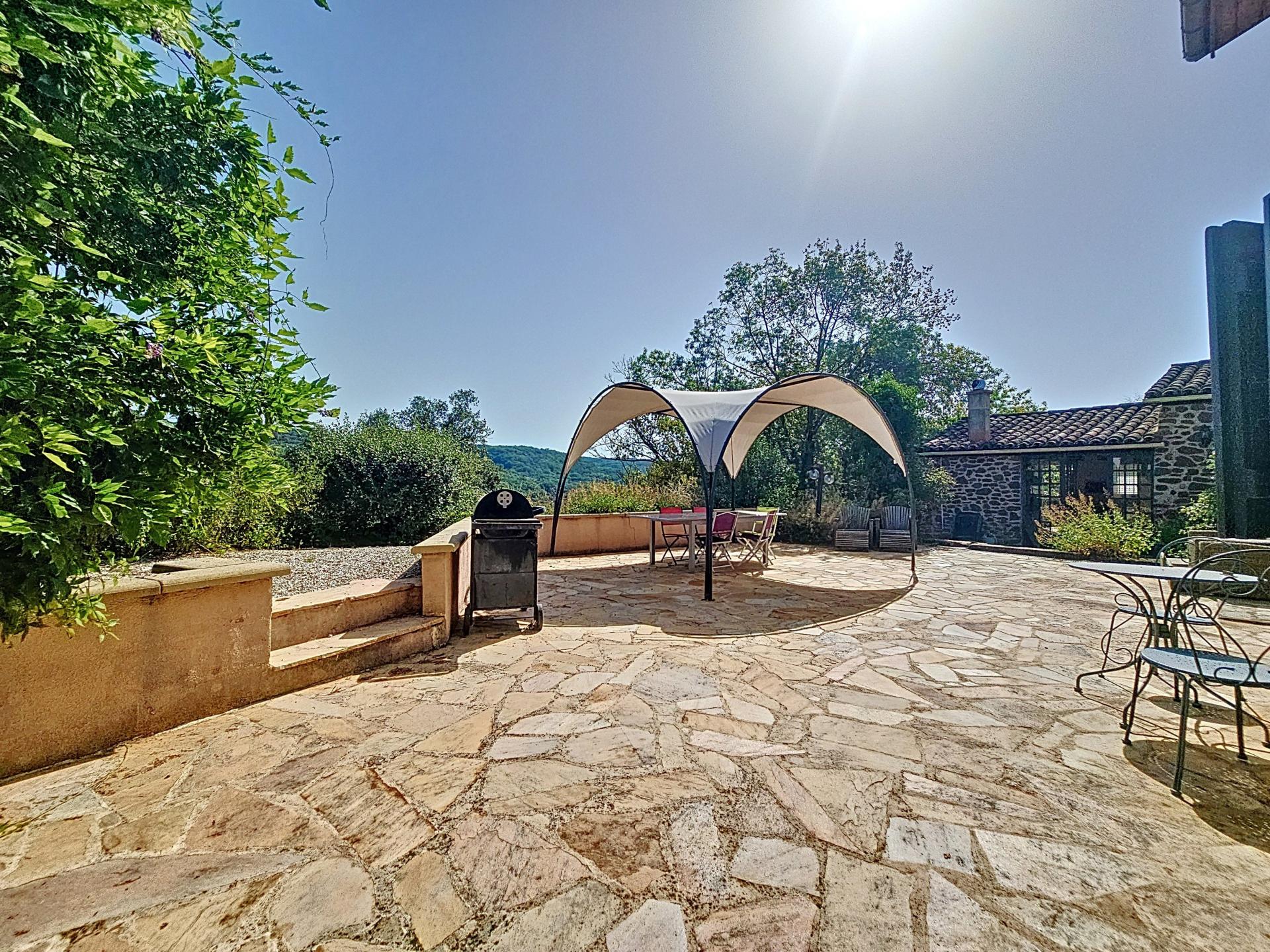 Maison en pierre avec gîtes entièrement rénové procédant une piscine chauffé, 4 terrasses sur 6000 m2 de terrain avec une vue imprenable