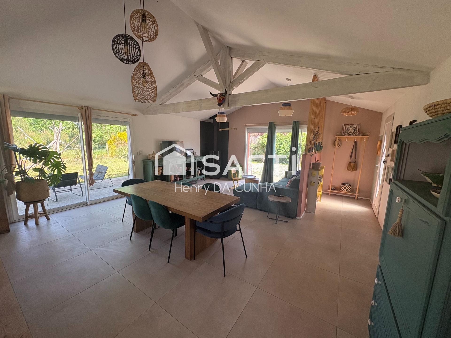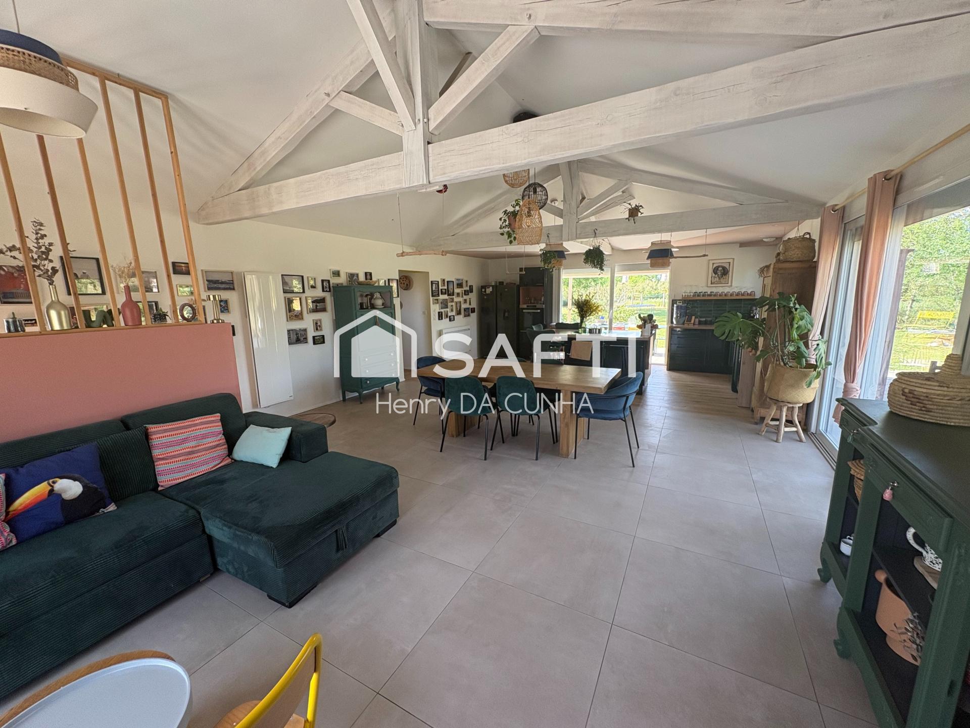 À Pissos, au cœur d’un environnement naturel privilégié, cette maison entièrement rénovée de 115 m² offre un cadre de vie rare, alliant confort moderne et sérénité. Implantée sur un terrain clos, arboré et paysagé d’environ 1 500 m², elle bénéficie d’une ouverture directe sur la forêt, sans isolement, avec commodités accessibles à pied ou à vélo.