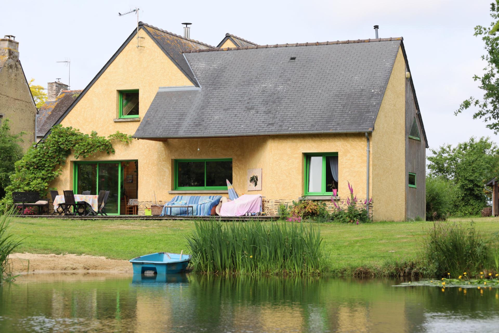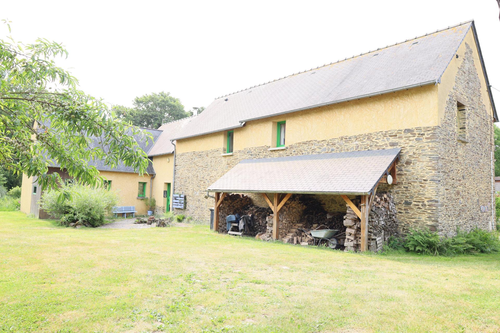 Magnifique propriété située en campagne de Pleugueneuc dans un écrin de verdure, composée d'une maison de 160 m² habitables, un hangar de 72 m² et un atelier de 32 m², sur un terrain arboré d'environ 6 000 m² avec un plan d'eau, bois et verger.