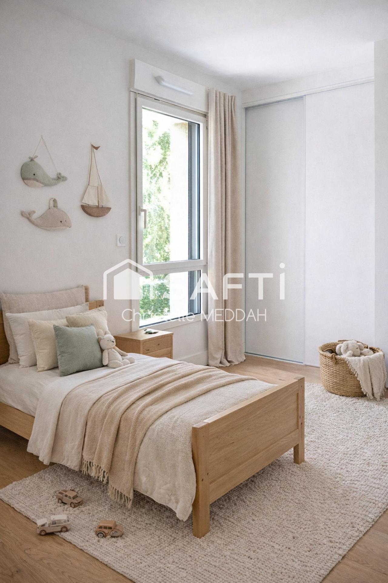 Certaines pièces (séjour, cuisine et une chambre) ont été aménagées virtuellement par intelligence artificielle. Les volumes et dispositions sont conformes à la réalité.