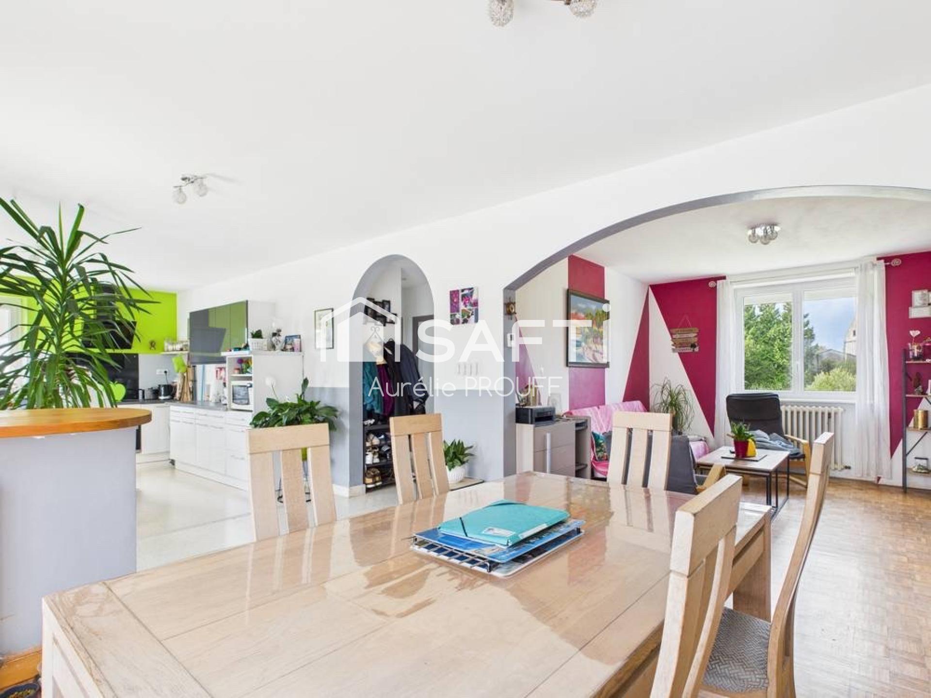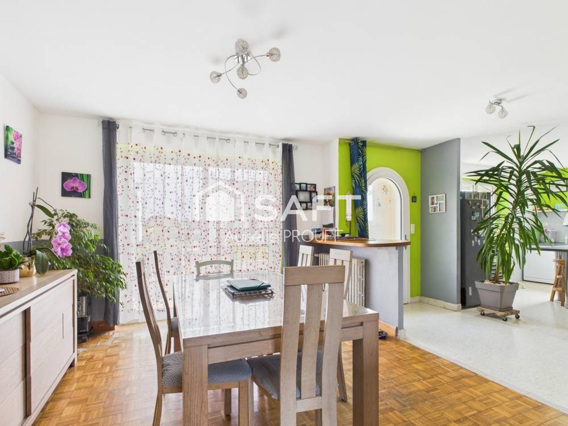 Avec ses 115 m² habitables et son jardin clos de 700 m², elle offre un cadre de vie idéal pour une famille. Dès l’entrée, on découvre une vaste pièce de vie lumineuse de 54 m², où le marbre et les parquets d’origine apportent une touche d’élégance intemporelle.