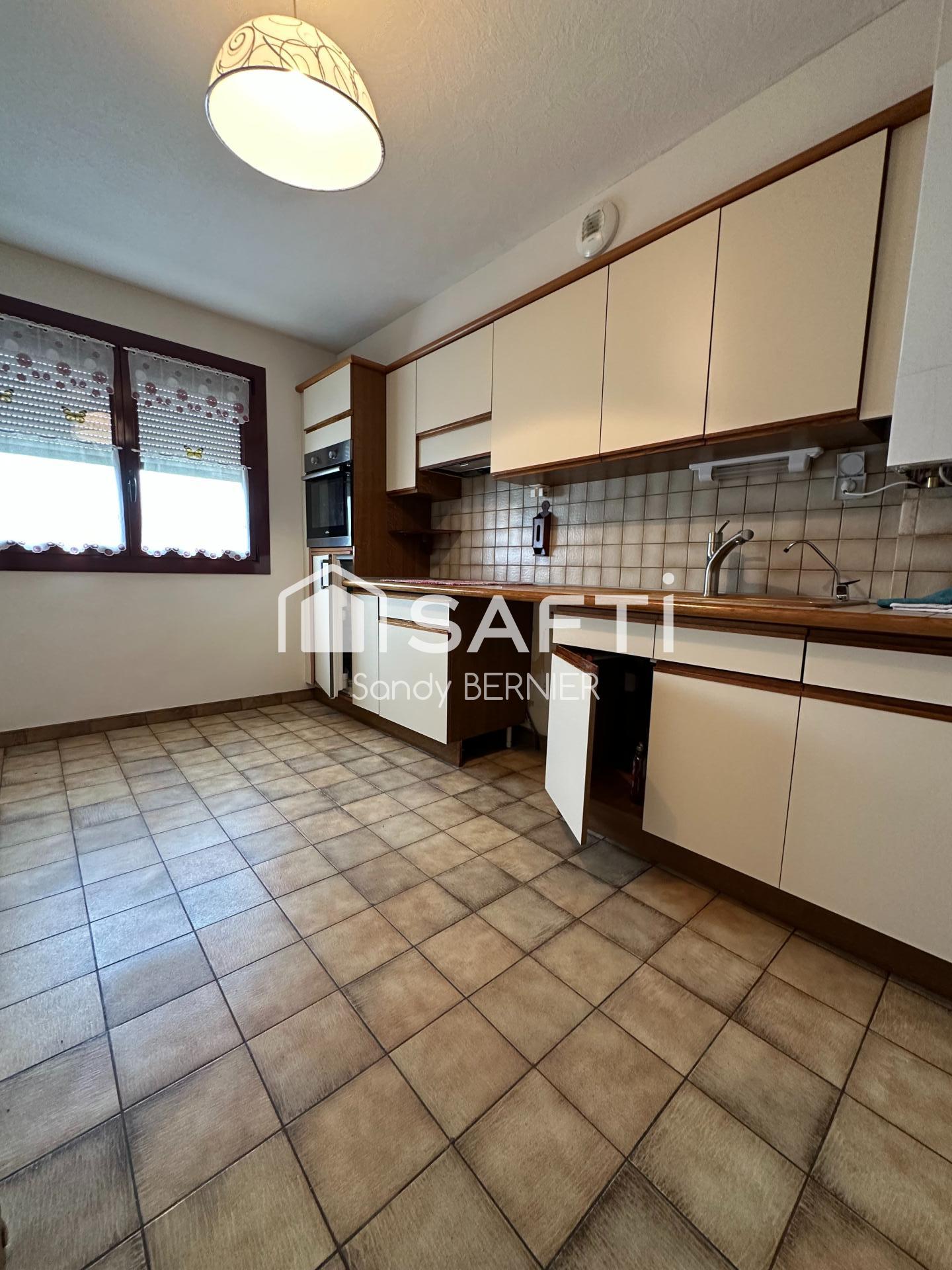 Maison spacieuse et bien agencée avec 4 chambres, jardin agréable, garage fermé, stationnement facile, située au calme proche écoles, lycées