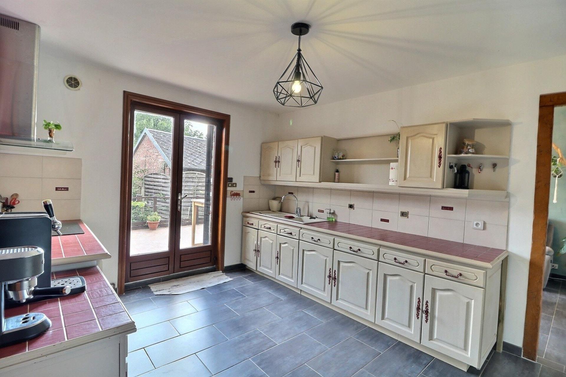 Maison mitoyenne de caractère en village, 3 chambres + 1 grenier, terrasse, jardin et garage. Belle prestation!