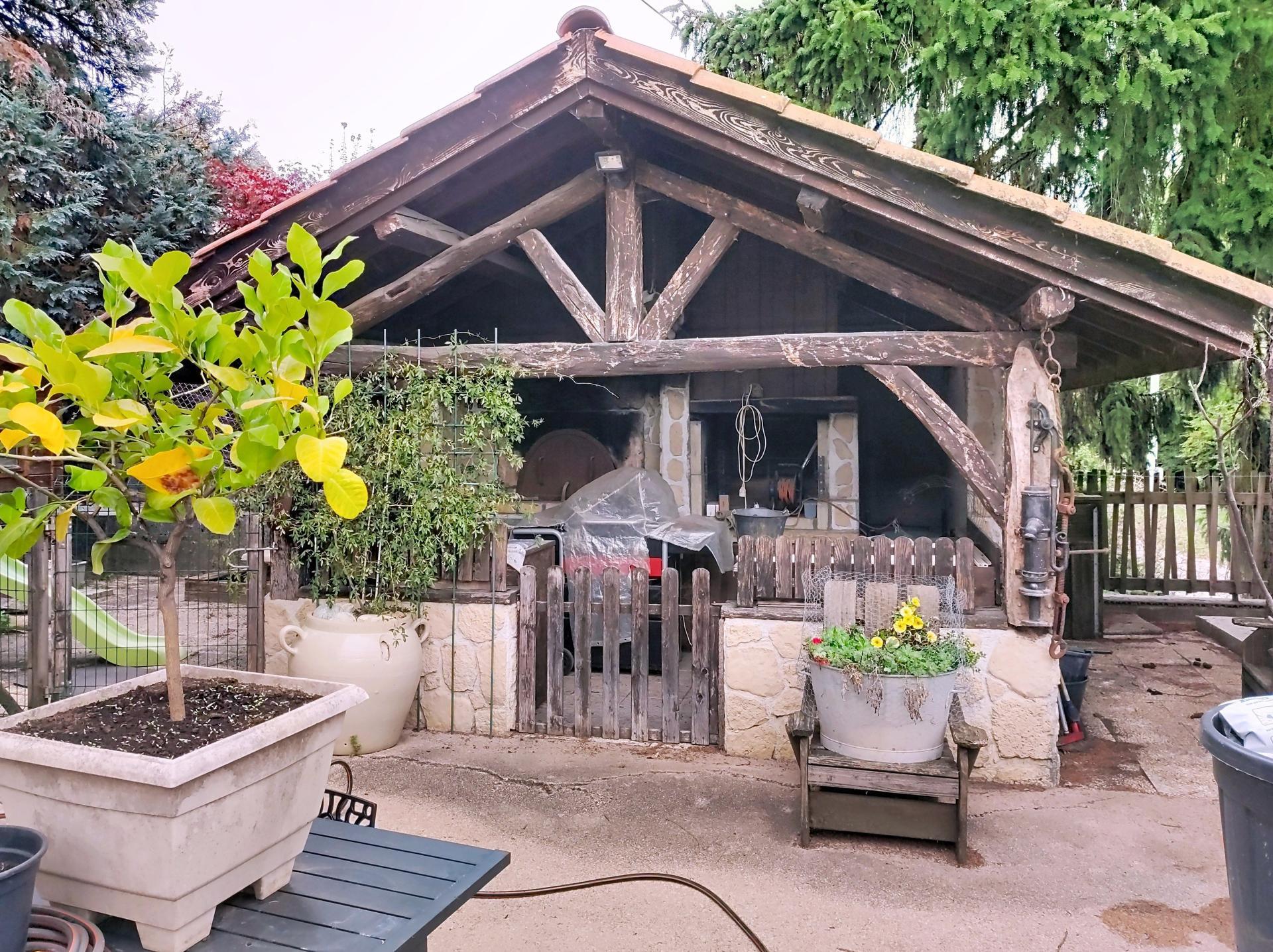 À l'extérieur, cette propriété s'étend sur un terrain de 920 m² arboré avec source d'eau, offrant une terrasse propice aux moments de détente en plein air, un ancien four à pain avec son coin cuisine, une cave pour le rangement, places de parking extérieures, ainsi qu'un garage pour abriter un véhicule en toute sécurité.