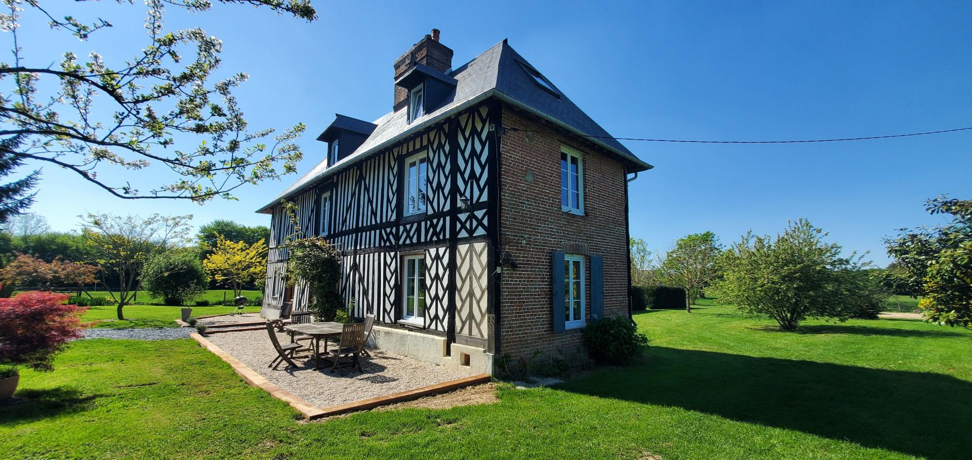 A 30mn des plages de la Côte Fleurie, 20mn de Pont l'Evêque ou 15 mn de Lisieux - Située dans un village pittoresque recherché avec écoles, commerces et restaurants, cette jolie maison de maître typiquement normande repose sur un parc clos, arboré et fleuri de 5000m² agrémenté d'un grand bâtiment en dépendance.