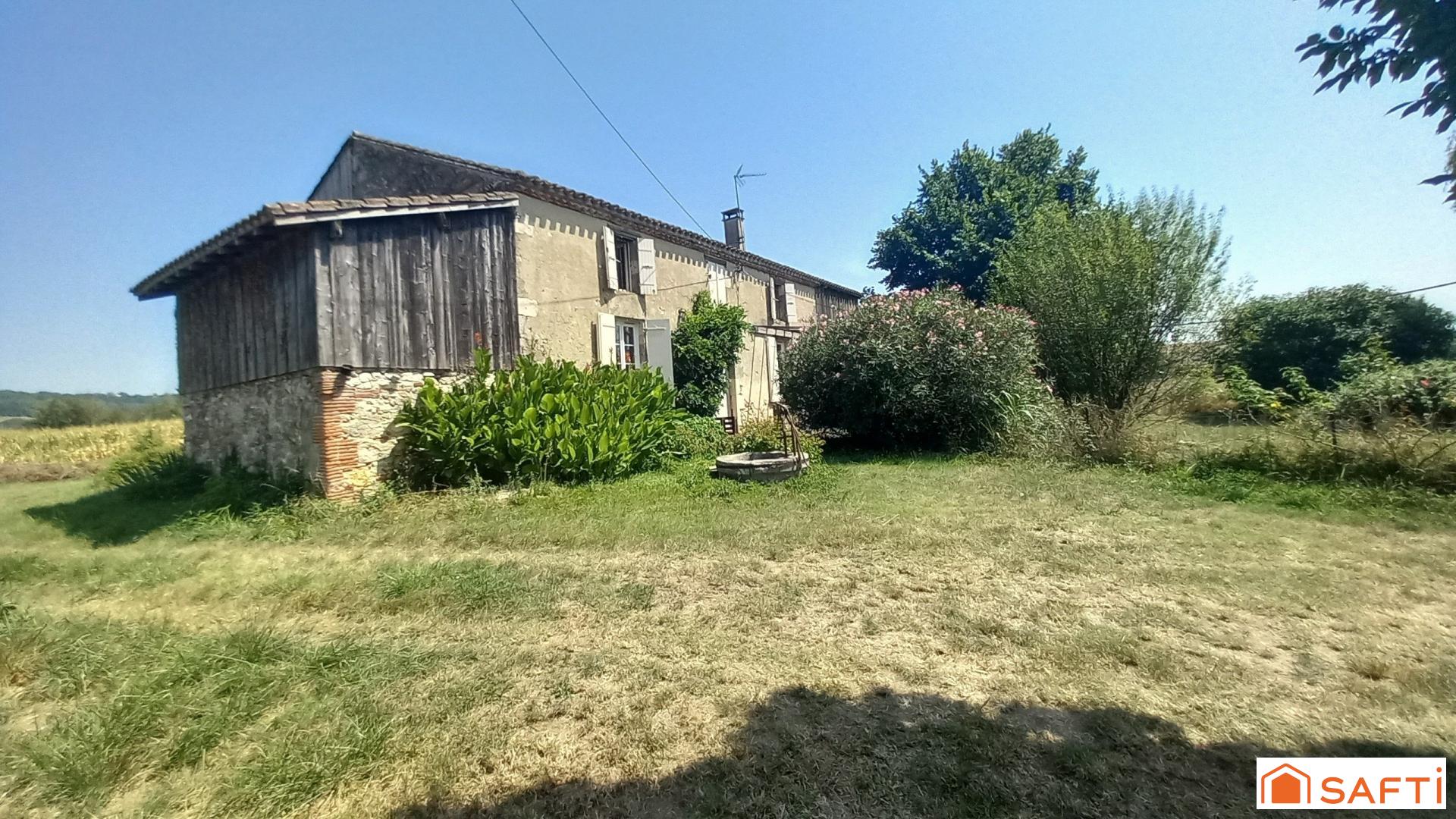 Dans la vallée de la Garonne, entre Marmande et Agen, maison de campagne en pierres du 19eme de 131m2 habitables avec dépendances sur parcelle de 3610m2 partiellement clôturée.