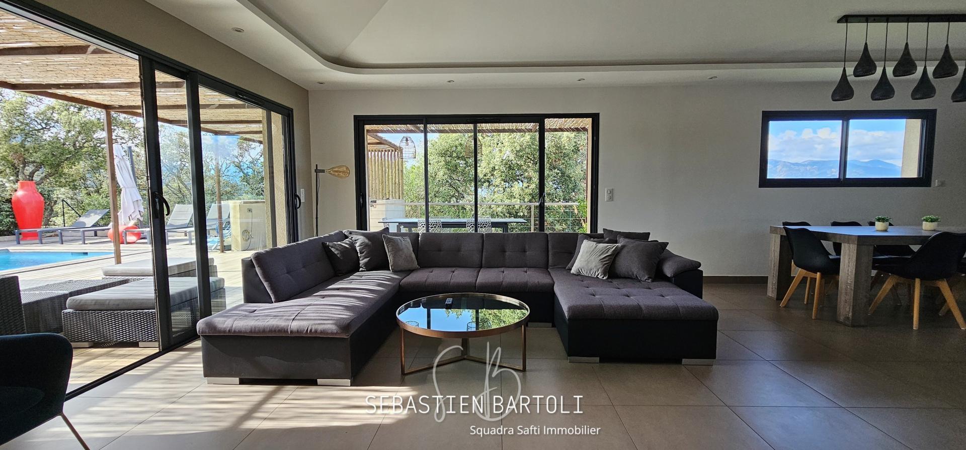 Située au calme à 12 minutes des plages de Palombaggia et 6 minutes du centre ville de Porto-Vecchio, venez découvrir cette belle opportunité composée d'une villa principale T4 moderne de 125m2 avec 3 chambres dont une suite parentale, une belle superficie de pièce à vivre avec cuisine ouverte, un espace piscine avec cuisine d'été d'ou vous apercevrez la citadelle de Porto-Vecchio.