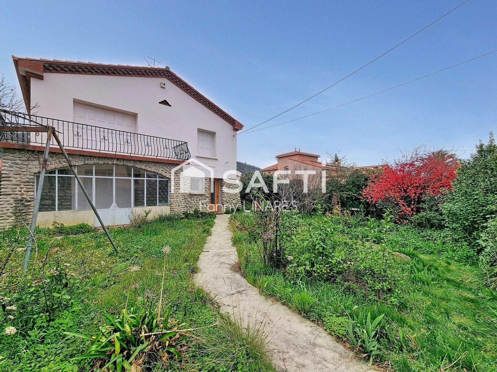 Dans le quartier recherché de la clinique de Prades, au calme et à dix minutes à pied du centre-ville, je vous propose cette belle villa 4 faces de 1960 sur un terrain de plus de 600m2. En R+1, elle peut être aménagée en deux appartements indépendants ou en un seul et même grand logement. A l'entrée vous trouverez un hall desservant, au rez-de-chaussée, salon-salle à manger s'ouvrant sur la véranda fer-verre plein sud, donnant sur le jardin, une petite cuisine, une salle d'eau, une chambre et plusieurs petites pièces dont une pouvant être aménagée en seconde chambre. A l'étage, une cuisine indépendante, un séjour donnant sur la terrasse avec vue sur le Canigo, 4 chambres, une salle de bains, un wc et plusieurs placards. Accès à un grenier pour stockage. Cette villa comporte aussi un garage de 33m2. La bâtisse, de bonne facture (maçonnerie traditionnelle), a vu sa façade ravalée et ses menuiseries extérieures repeintes il y a quelques années. l'intérieur est à mettre intégralement au goût du jour. Chauffage fioul, simple vitrage. taxe foncière 2025 : 2708€.