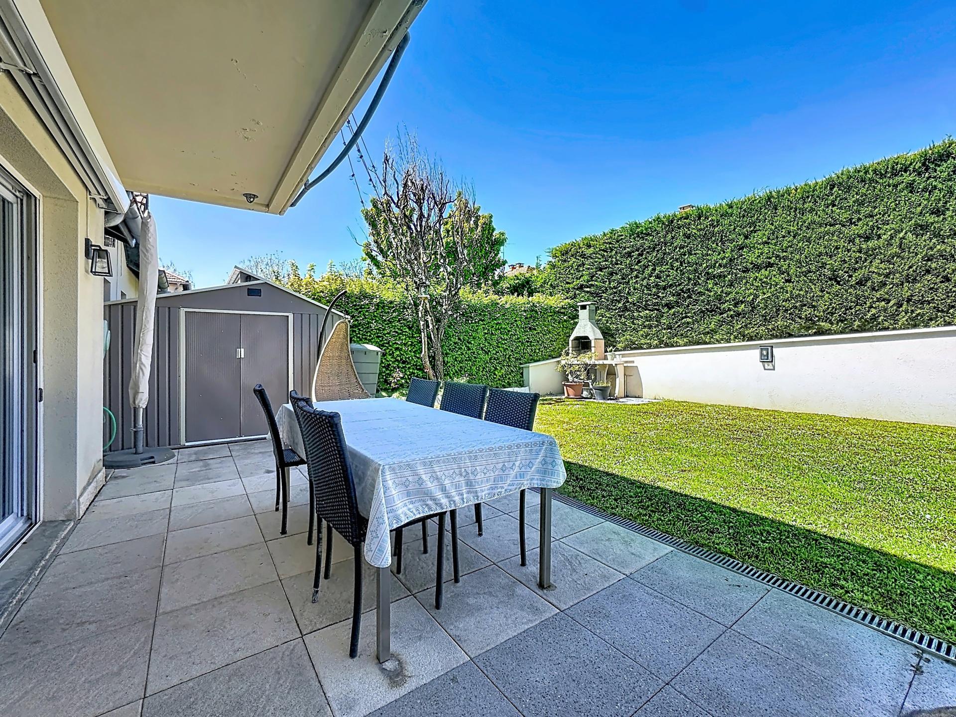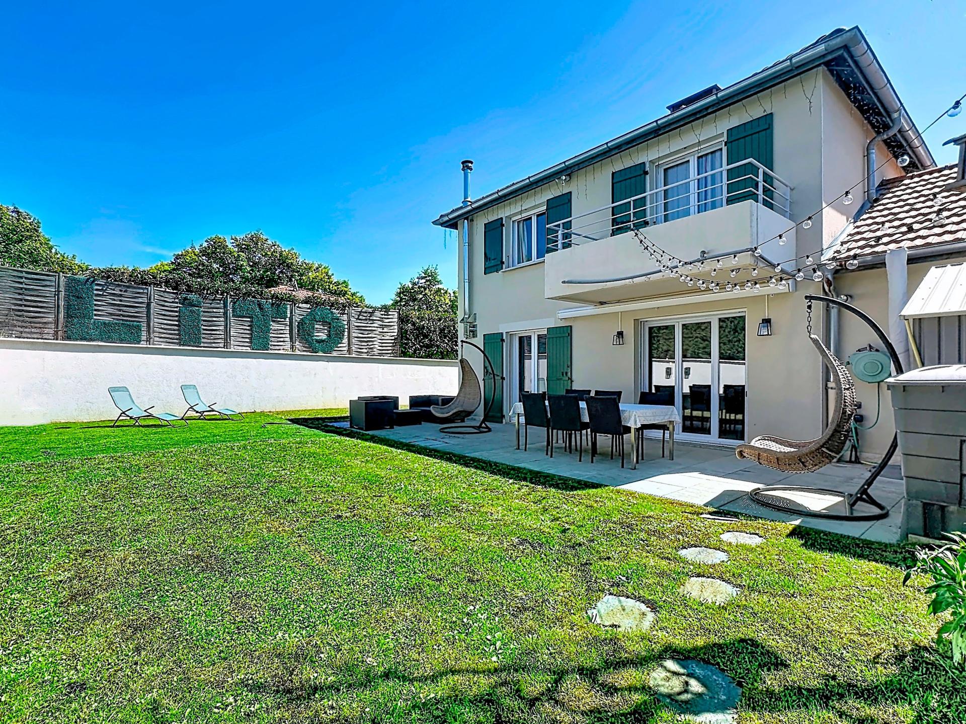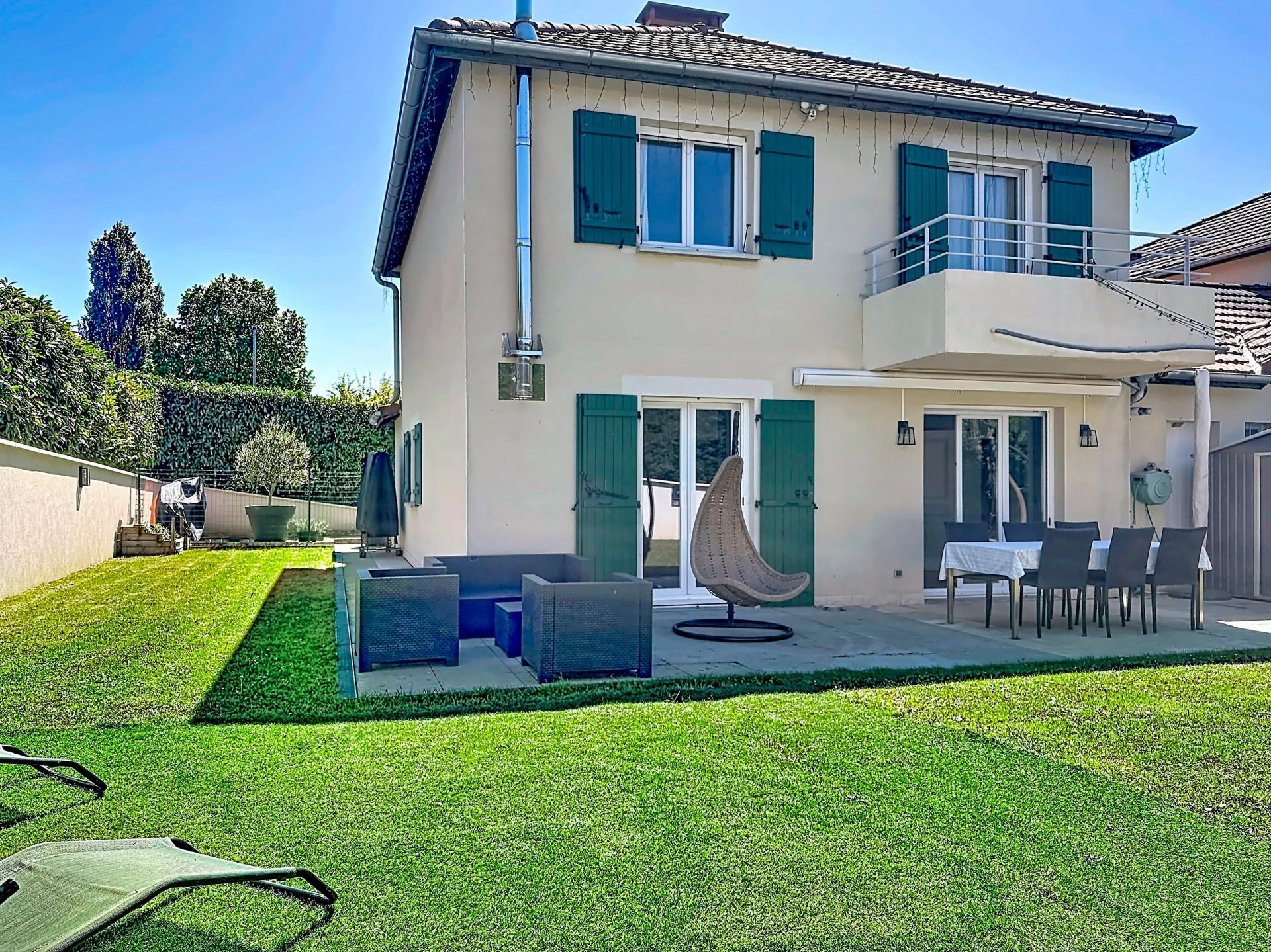 Maison de 110 m² avec 4 chambres, pièce de vie 41 m², jardin sans vis-à-vis, DPE C, garage, 2 parkings, proche centre et Suisse.