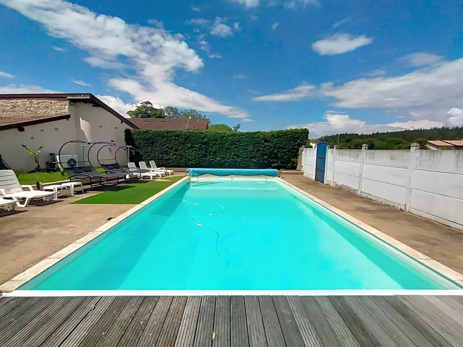À l’extérieur, le terrain de 985 m², accueille une piscine avec pool house, une agréable terrasse couverte avec barbecue, ainsi que de nombreuses dépendances : vaste atelier, abris voiture et bois, espace de rangement… Autant d’atouts rares qui offrent un potentiel remarquable pour vos projets (atelier, stockage, activité ou aménagement complémentaire).