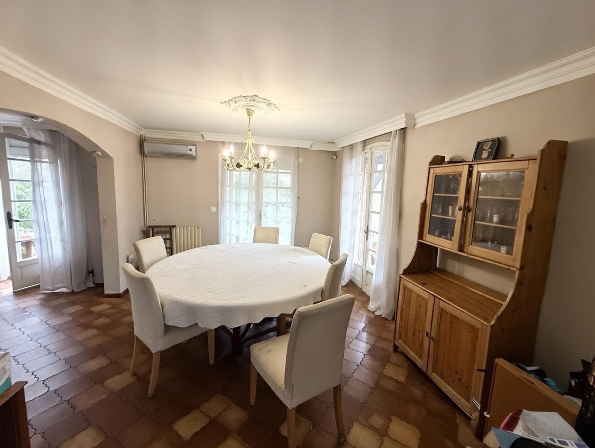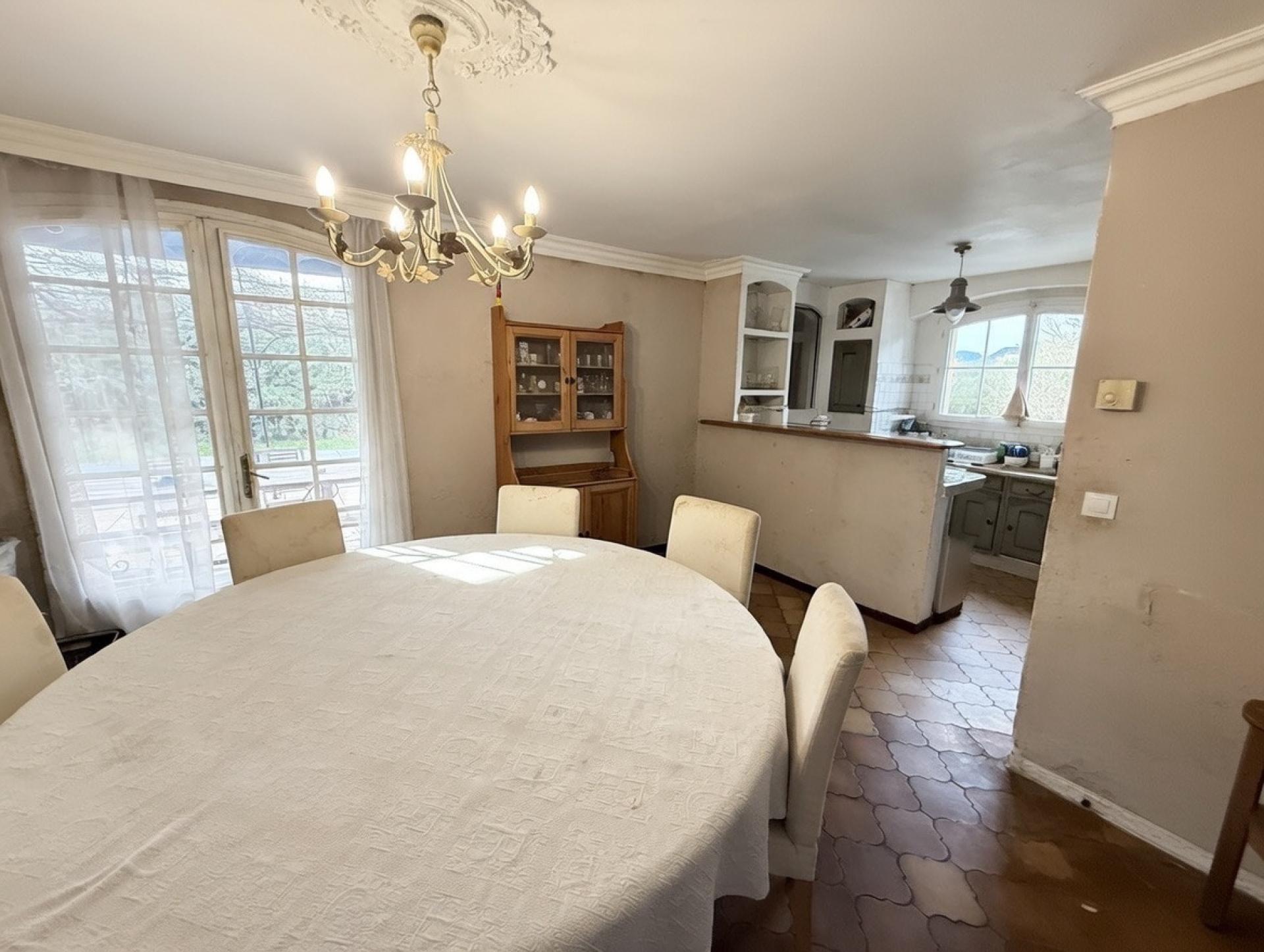 OPPORTUNITÉ ! MAISON 4 PIÈCES 3 CHAMBRES AU CALME, EXPOSÉE SUD, EN CENTRE VILLE, TRAVERSANTE, DE PLEIN PIED SOIT 125 M2 + UN GRAND GRENIER, ÉDIFIÉE SUR UN TERRAIN DE 1030 M2 + PISCINE + 6 STATIONNEMENTS MINIMUM. Proche écoles et toutes commodités. DESCRIPTIF : une entrée avec placards ; une pièce de vie de 38 m2 avec salon/salle à manger donne sur la terrasse, le jardin, la piscine ; deux chambres avec vue sur le jardin ; une 3ème chambre inachevée de 22 m2 faisant office de cellier/rangement actuellement (garage possible), une salle de douche moderne avec deux vasques, des toilettes séparés avec lave-mains. Un grenier avec une grande superficie complète le bien (dalle en béton). CHEMINÉE. CLIMATISATION RÉVERSIBLE. RADIATEURS. PORTE ANTI-EFFRACTION. PORTAIL MOTORISÉ. TOUT À L'ÉGOÛT. PRÉSENCE D'UN VIDE SANITAIRE.