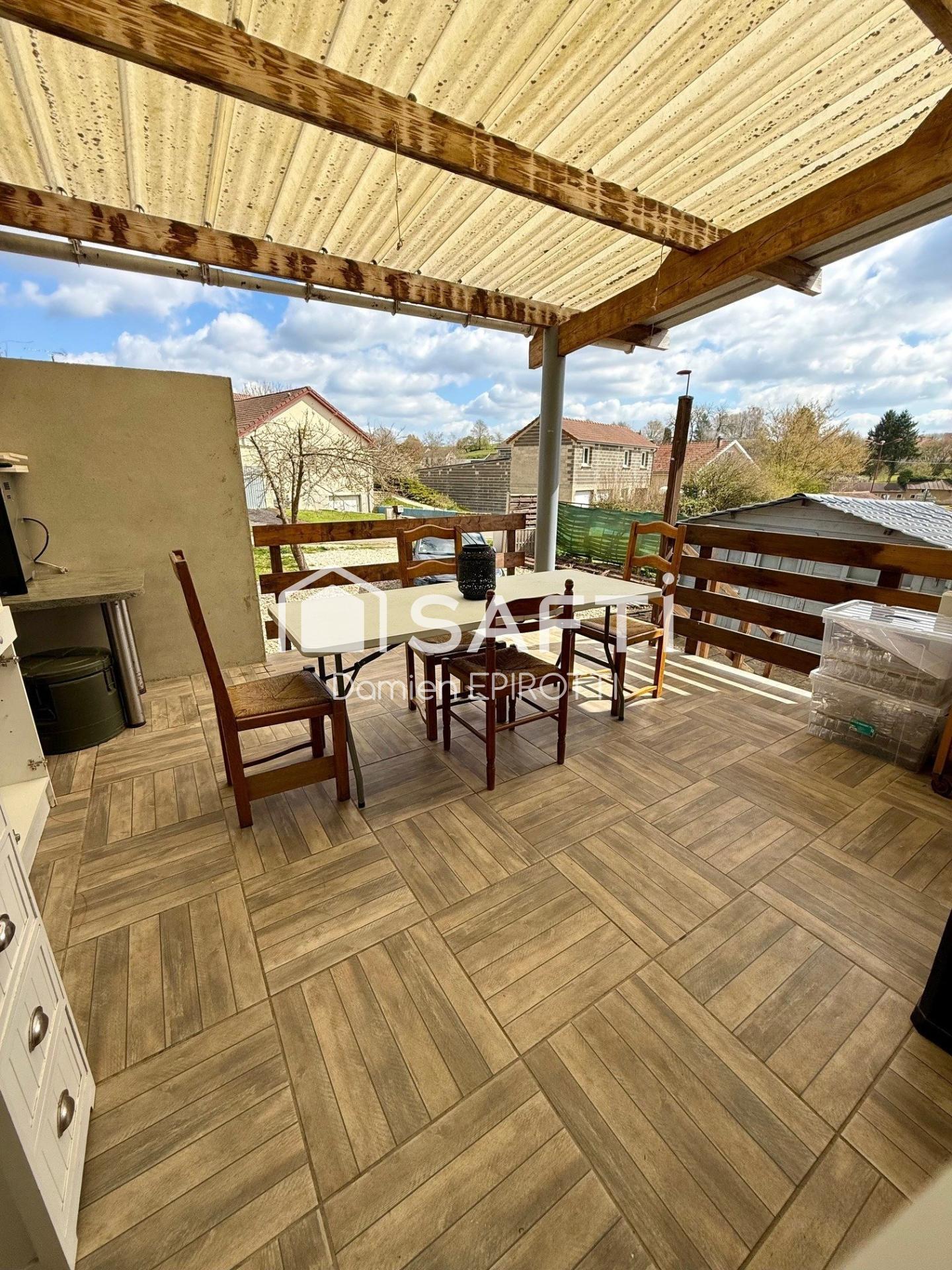 À l’extérieur, une terrasse vous permettra de profiter pleinement des beaux jours et du terrain.