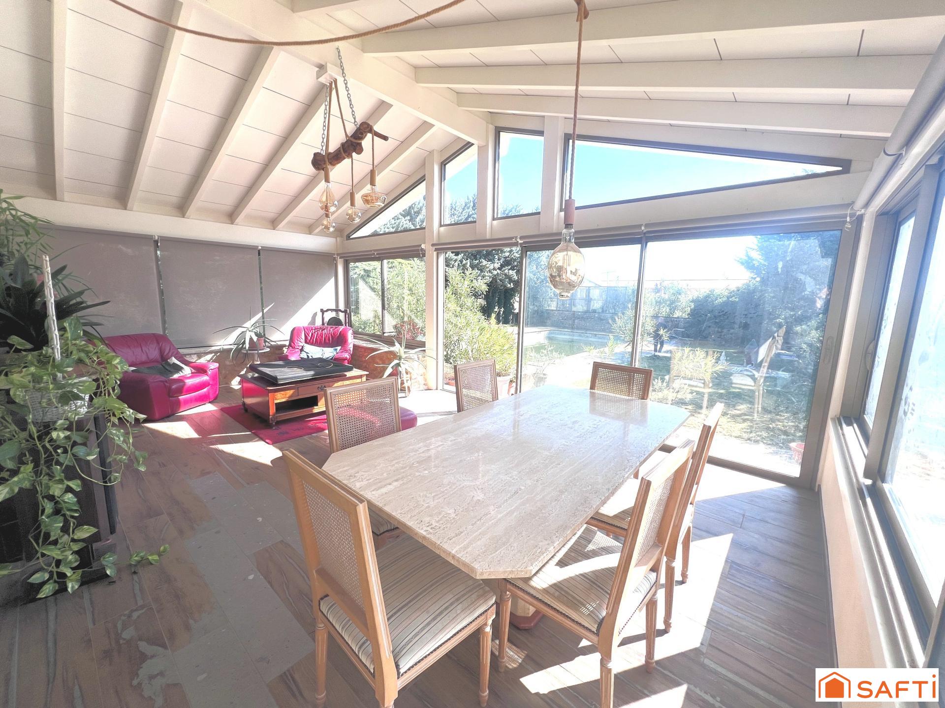 • Une véranda baignée de lumière, offrant une vue apaisante sur le jardin