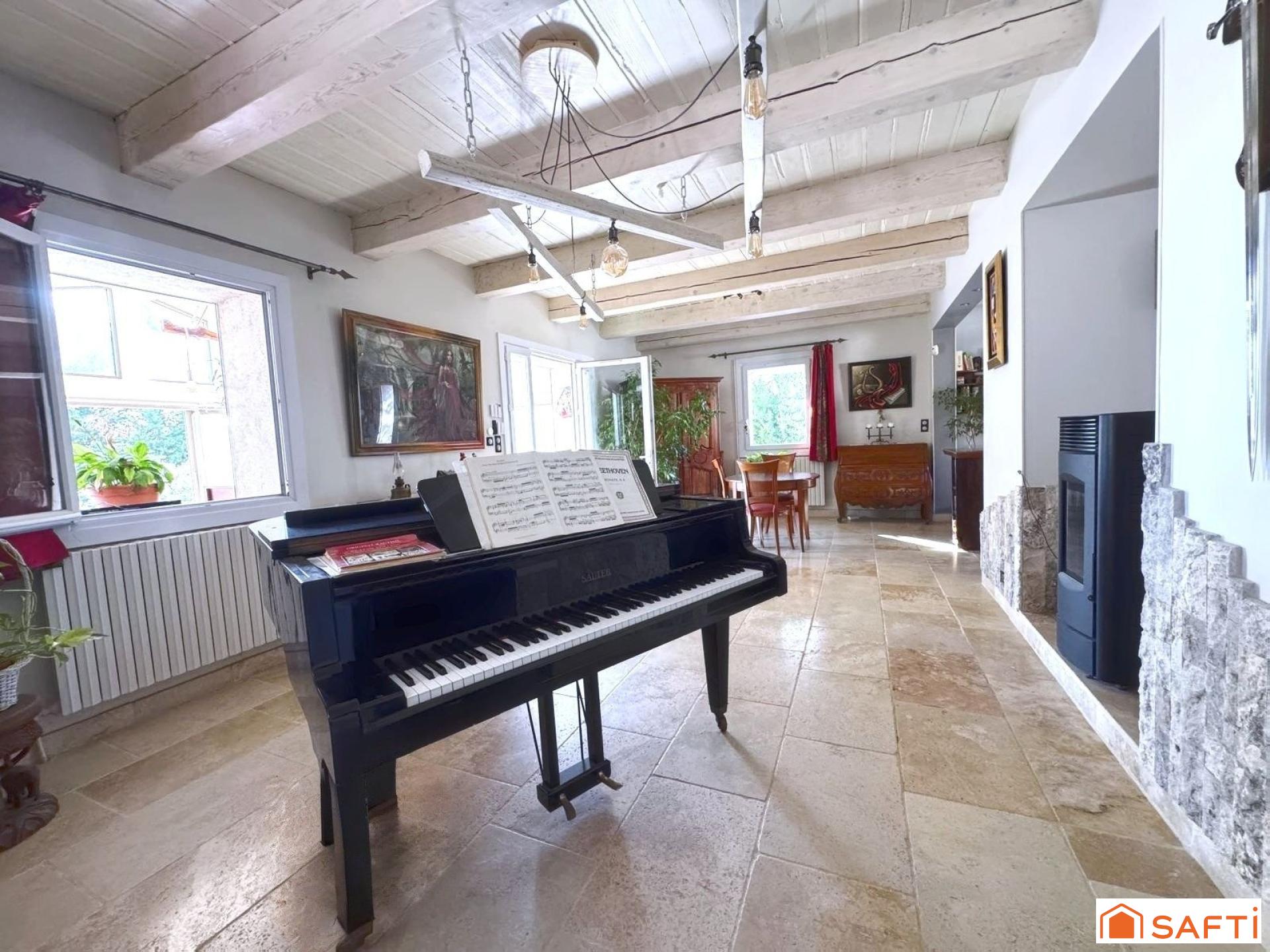 Nichée dans un environnement paisible et lumineux grâce à son exposition plein sud, cette élégante propriété de plain-pied d’environ 209m², accompagnée de sa spacieuse dépendance de 136m², offre un cadre de vie privilégié au cœur du Luberon.