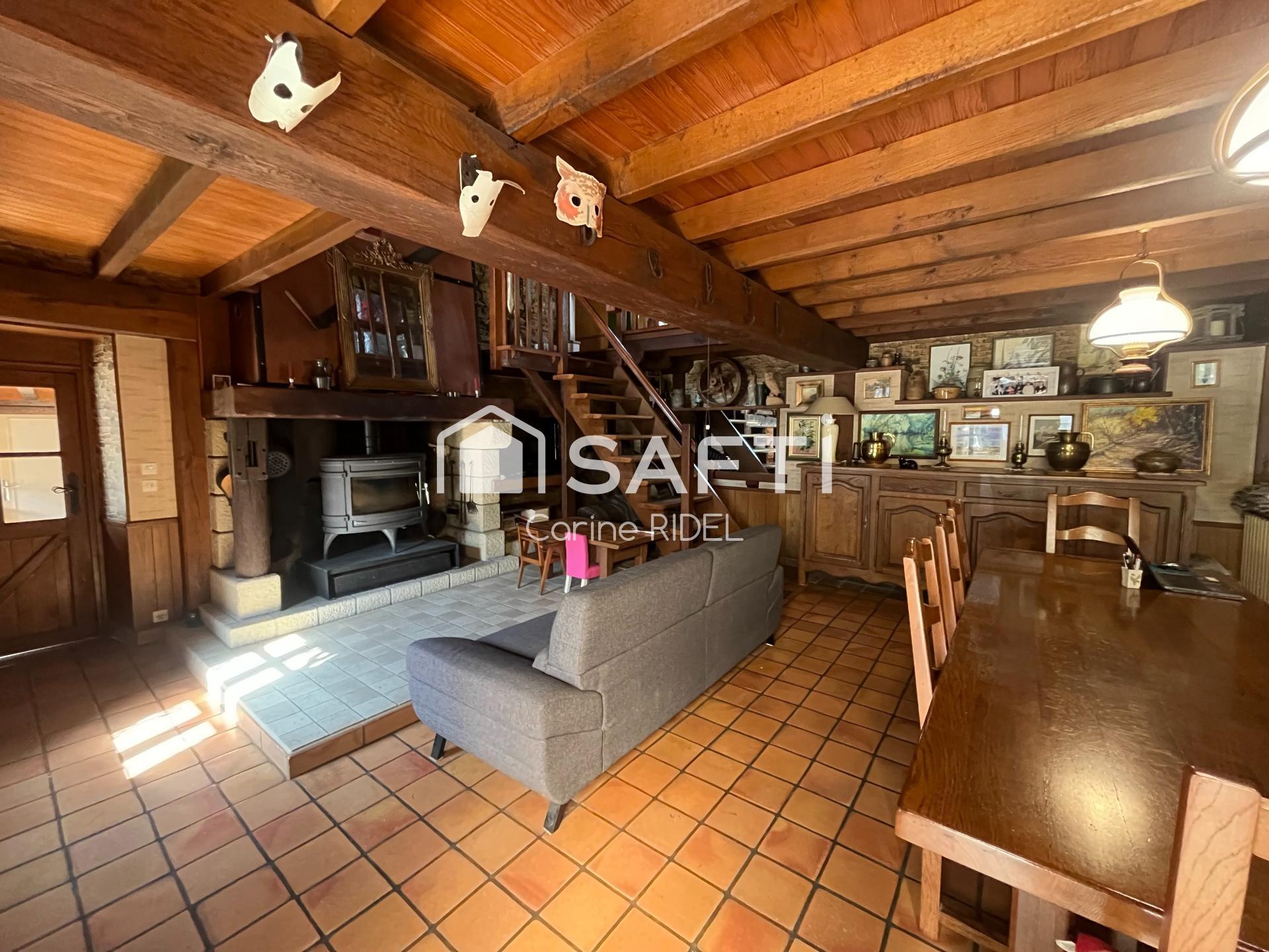 La maison se déploie sur deux niveaux : au rez-de-chaussée, on trouve une cuisine équipée, un espace de vie, une buanderie et un WC. À l'étage, une salle de bain, un WC, 3 chambres et une mezzanine offrent des espaces conviviaux et fonctionnels. Enfin, au deuxième étage, un grenier aménagé avec une chambre d'appoint complète cet espace à la fois chaleureux et unique, idéal pour une vie de famille paisible.