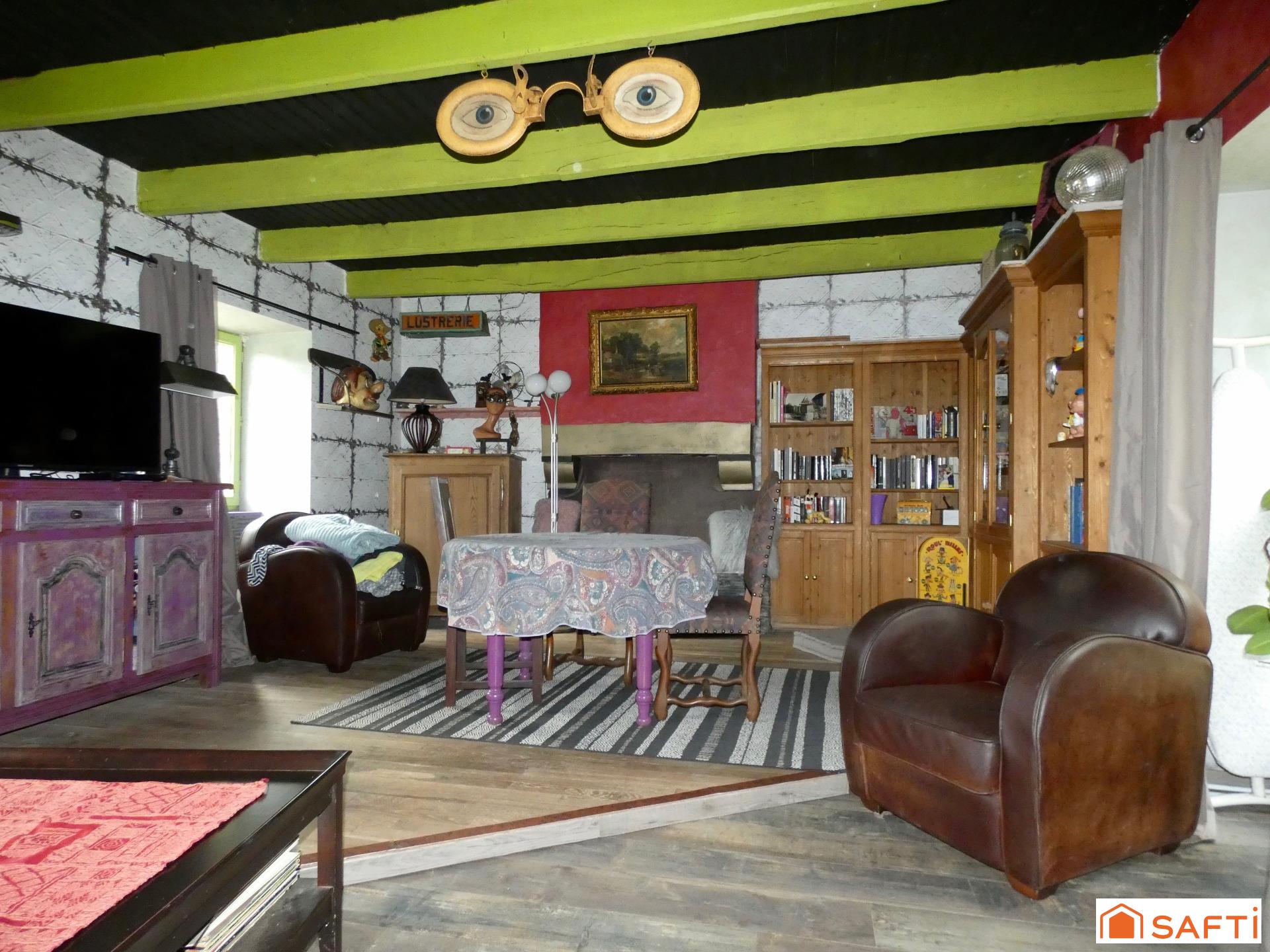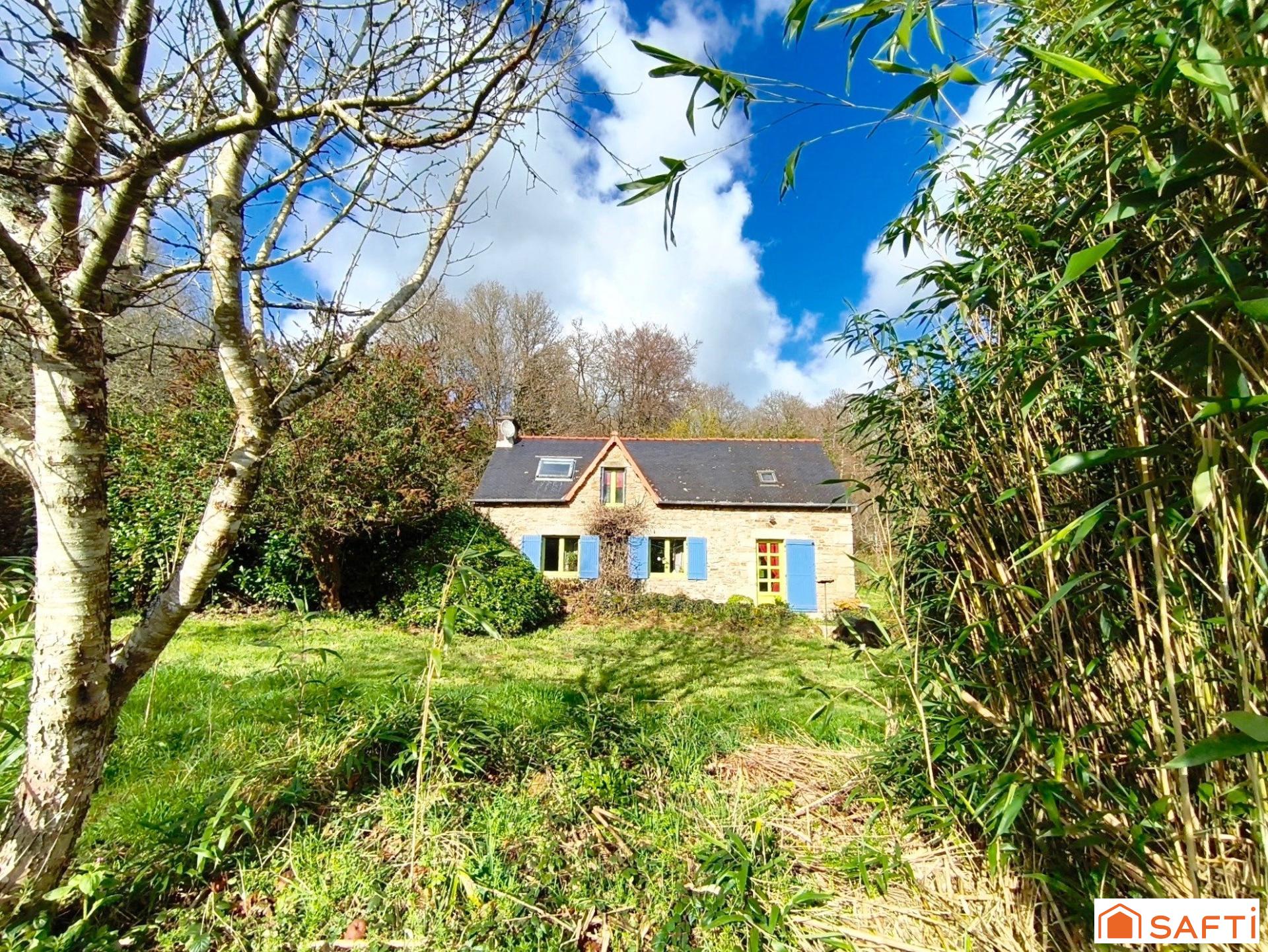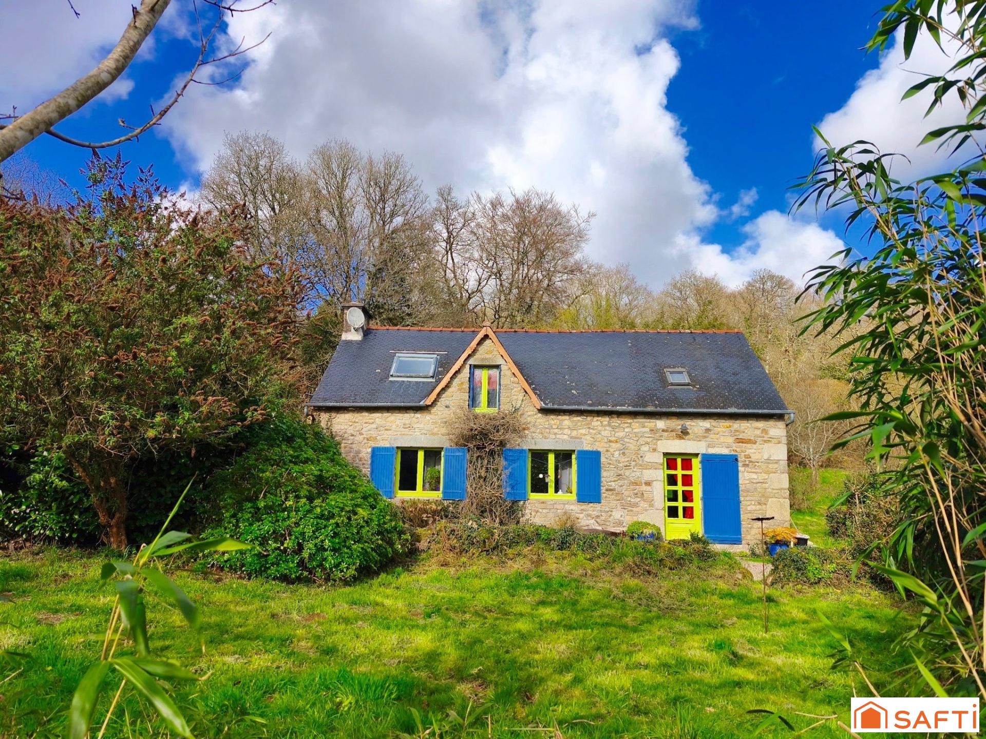 - MELLAC - Située à seulement 6 kms de Quimperlé, dans un environnement verdoyant, découvrez cette jolie maison en pierre de 75 m2 nichée dans un écrin de verdure d'environ 2,2 hectares au calme et sans vis à vis. Un cours d'eau traverse la propriété et une rivière se situe en contrebas, offrant un cadre rare et préservé. Dès l'entrée, vous découvrirez une atmosphère chaleureuse et singulière. La maison assume pleinement son style rétro, coloré et atypique, créant un lieu vivant, avec une vraie personnalité. Celle-ci se compose au rez de chaussée d'une vaste cuisine avec son sol en tomettes, d'un salon/séjour de 32 m2 environ, d'un wc. A l'étage, un palier dessert trois pièces à usage de chambre et une salle de bains avec wc.