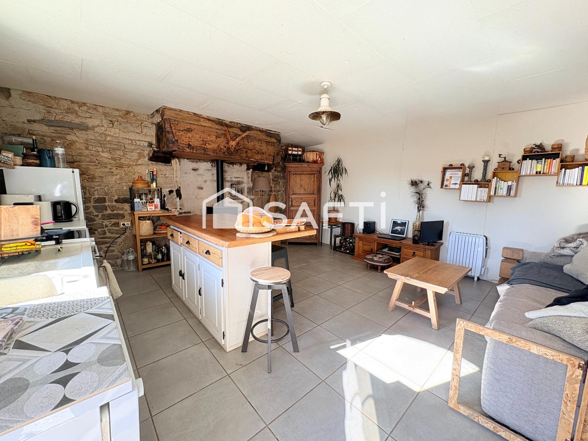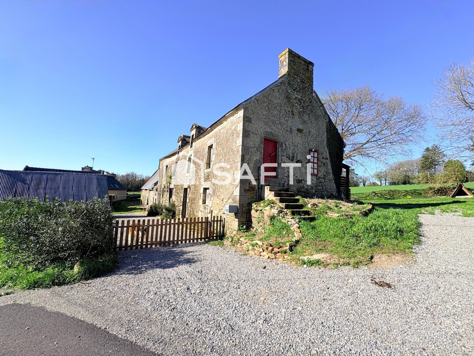 Située dans la commune de Quistinic (56310), cette maison bénéficie d'un environnement rural paisible, idéal pour les amoureux de la nature à la recherche de tranquillité. Nichée sur un terrain spacieux de 2800 m² en partie clôturé, cette propriété offre un cadre verdoyant et authentique, avec de jeunes arbres fruitiers, un coin potager et un espace vert à aménager.
