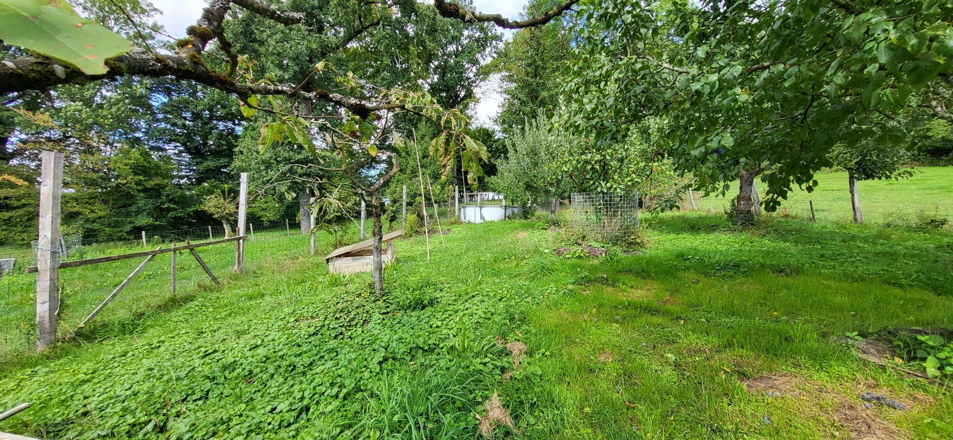 Terrain exceptionnel de 4845 m² : bassin à poissons, poulailler, ancien espace chevaux, atelier, réserve de bois et cabane indépendante d’env. 30 m² avec sanitaire (idéal chambre d’amis ou projet gîte).