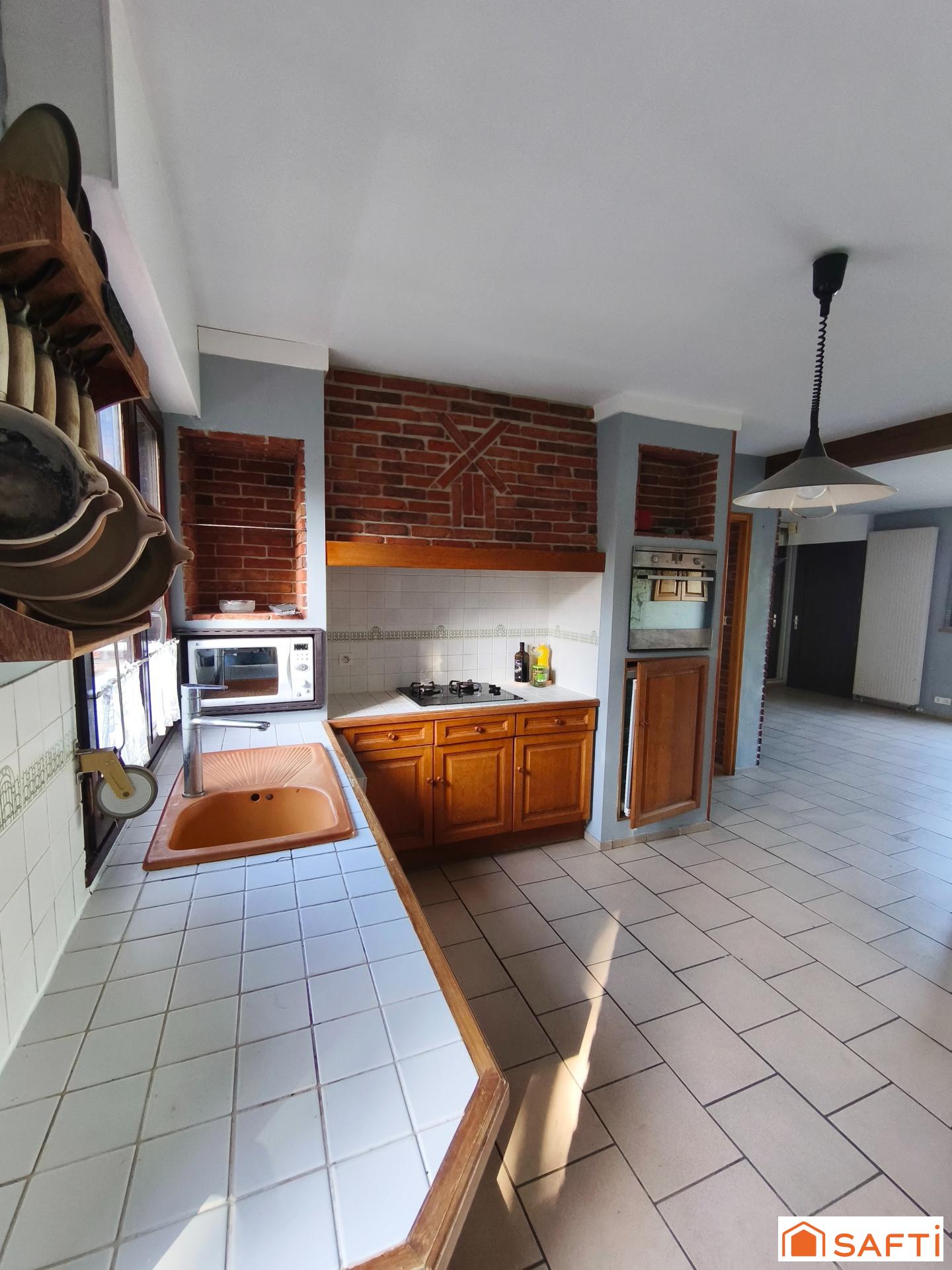 Située dans un environnement verdoyant, cette maison de 95 m² vivable de plain-pied, offre un cadre de vie agréable et fonctionnel.